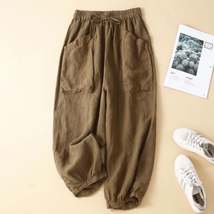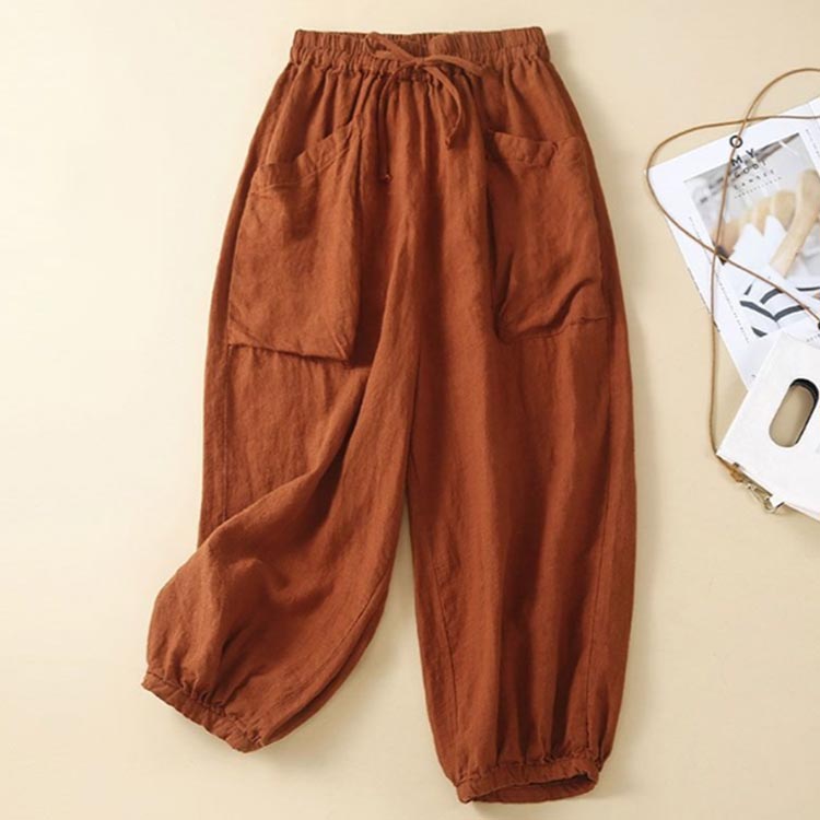 涼しい 綿麻パンツ バルーンパンツ パ レディースファッション 44%Off コーヒー 麻色 グリーン オレンジ ブラック M L XL 2XL 3XL