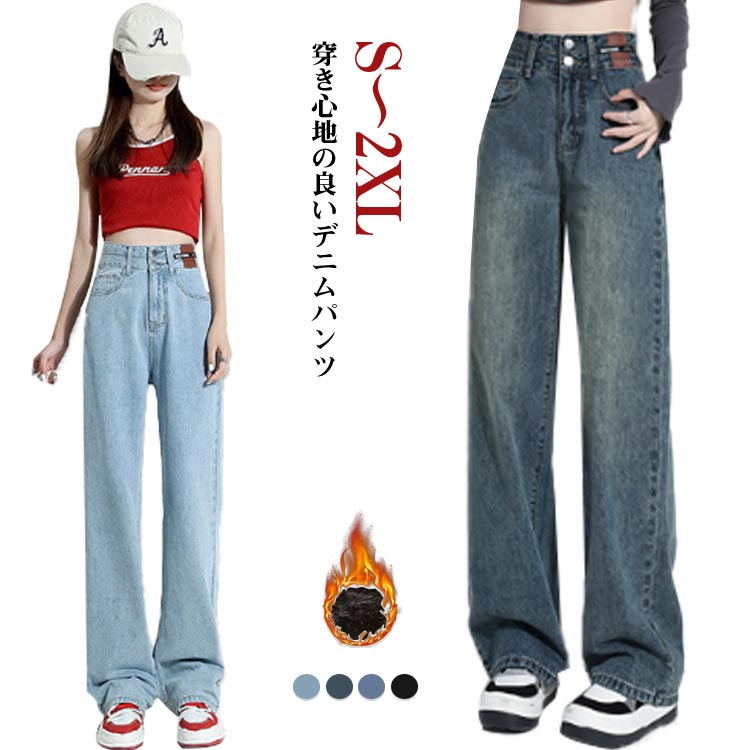 デニムパンツ ハイウエスト パンツ ボ ボトムス パンツ 続々登場 ブルーグレー/裏起毛なし ダークブルー/裏起毛なし 黒/裏起毛なし ライトブルー/裏起毛なし ブルーグレー/裏起毛 ダークブルー/裏起毛 黒/裏起毛 S M L XL 2XL