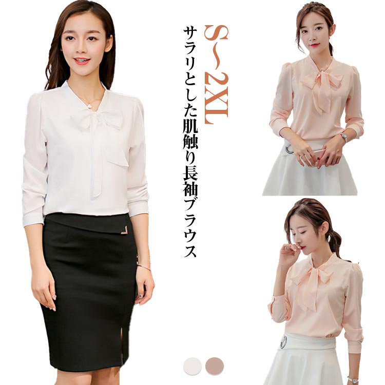 冬 Vネック レディース 大人 長袖 トップス シャツ ブラウス 割引 ホワイト/長袖 ピンク/長袖 S M L XL 2XL