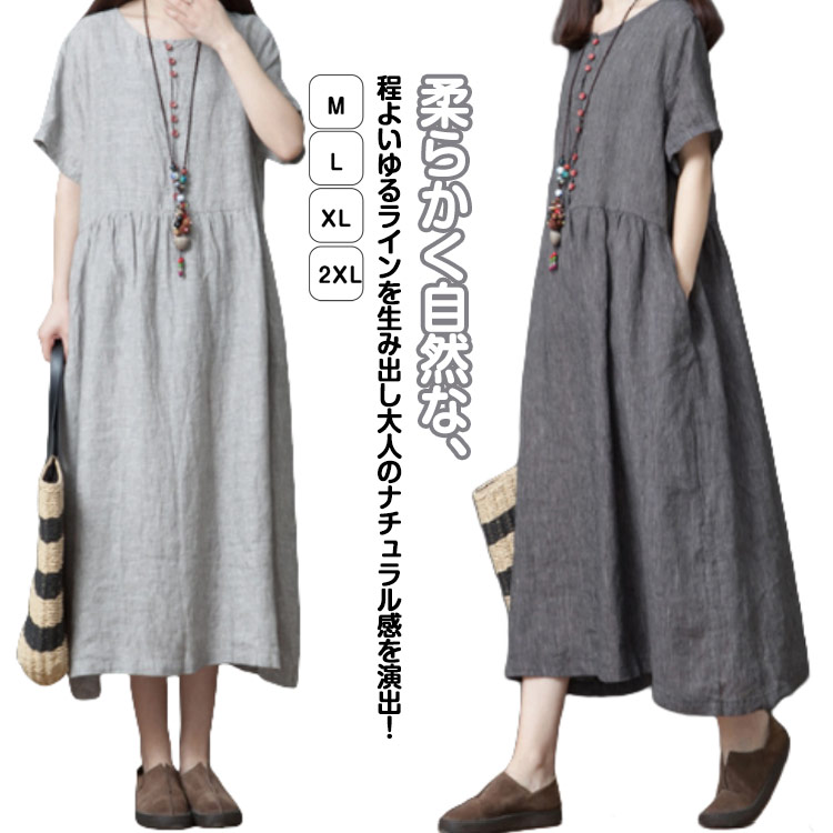 ワンピース ロングワンピース 半袖ワン レディースファッション 42%Off ダークグレー ライトグレー M L XL 2XL