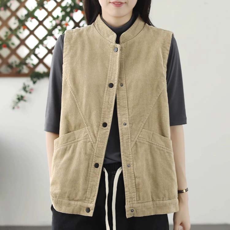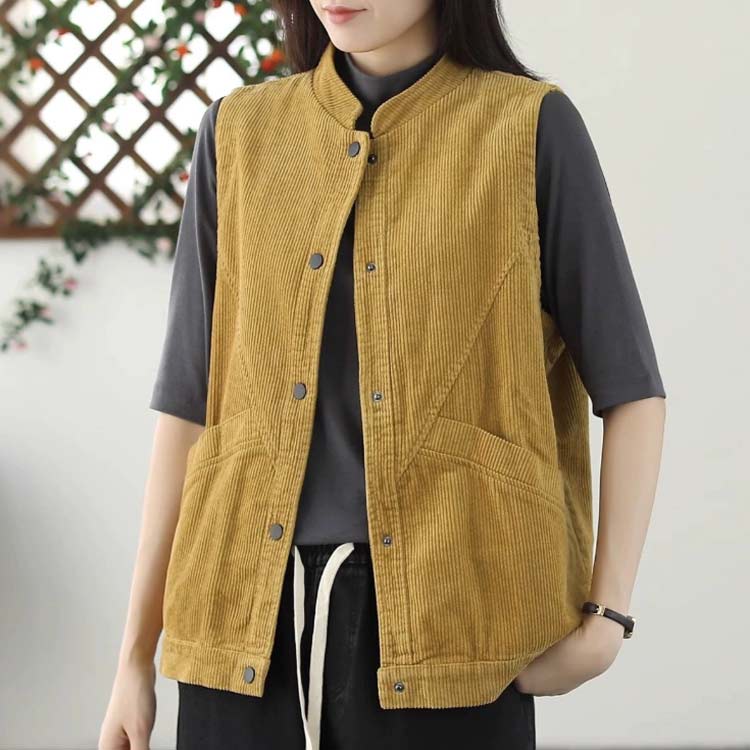 コーデュロイジレ 前開き ボタン 春 レディースファッション 豊富 イエロー アプリコット ピンク M L XL 2XL