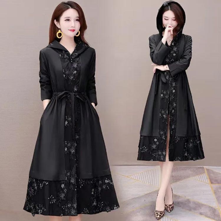 切り替え ロング丈 レディース フード コート ジャケット 豊富な品揃え ブラック ベージュ L XL 2XL 3XL 4XL 5XL