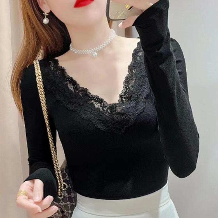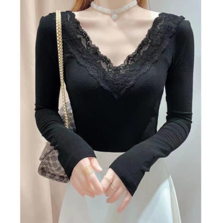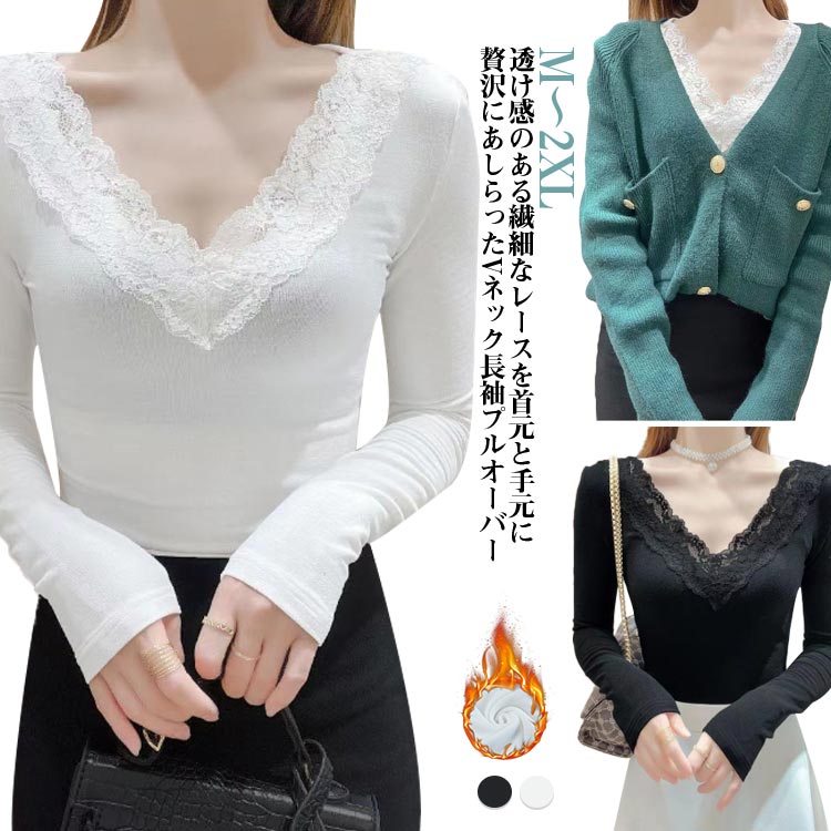 春秋 トップス 長袖 レディース レー トップス Tシャツ カットソー 人気 ホワイト/裏起毛なし ブラック/裏起毛なし ホワイト/裏起毛 ブラック/裏起毛 M(40-50KG) L(50-60KG) XL(60-70KG) 2XL(70-75KG)