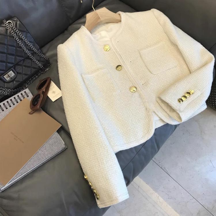 ツイードジャケット 母親 長袖 アウタ コート ジャケット 豊富な品揃え ブラック ホワイト S M L XL