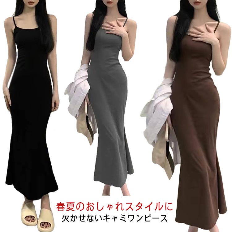 キャミソール インナー ロングワンピー トップス キャミソール 人気 ブラック グレー コーヒー S(35-55KG) L(45-70KG)