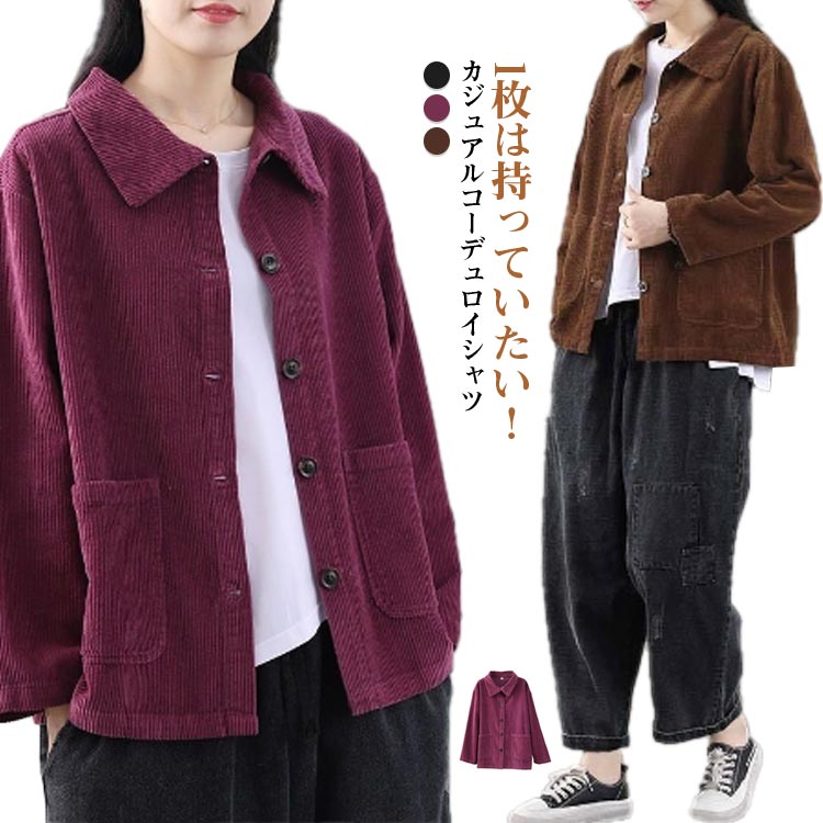 ジャケット コーデュロイ シャツ 無地 トップス シャツ ブラウス 割引 ブラック ブラウン パープル M L XL 2XL