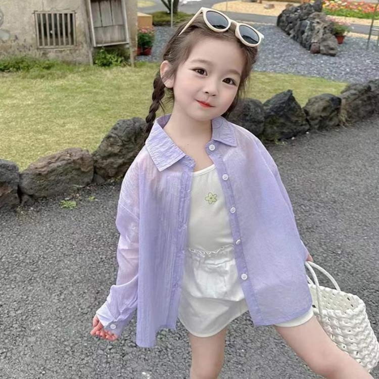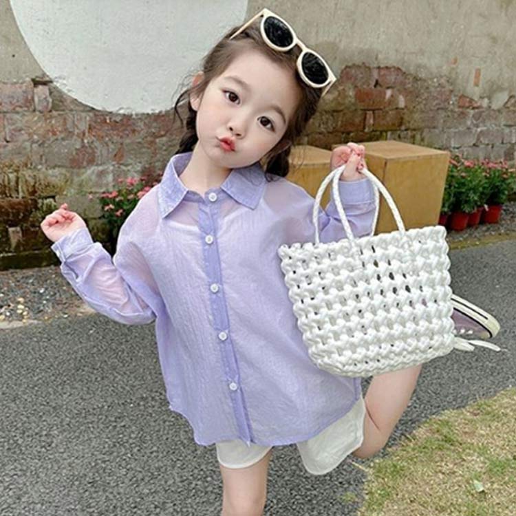 小学生 シャツ 無地 透け感 トップス キッズ ベビー マタニティ 続々入荷中 ホワイト パープル 90 100 110 120 130 140