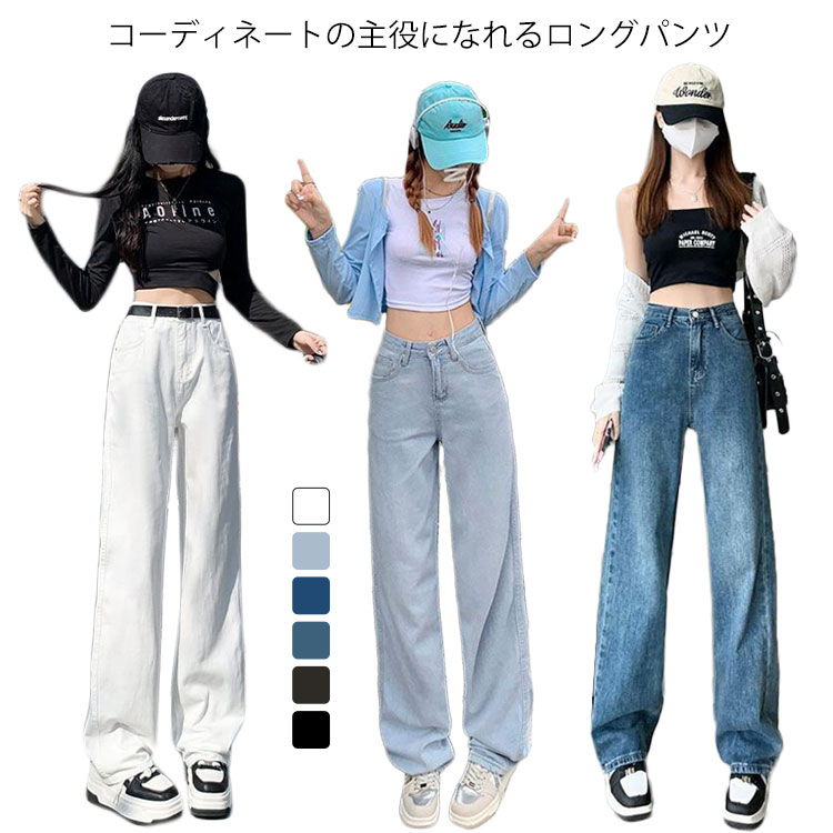レディース ハイウエスト ロングパンツ ボトムス パンツ 割引 ホワイト ブルーA ブルーB ブルーC 黒灰 ブラック S M L XL 2XL