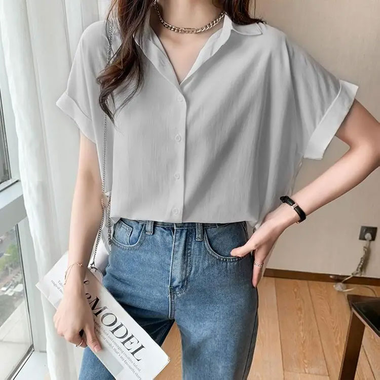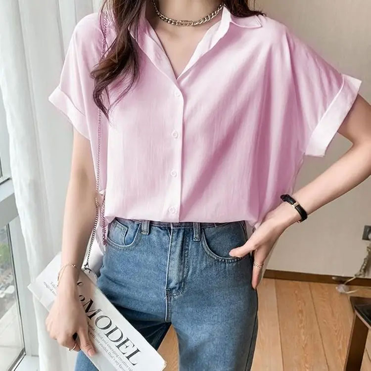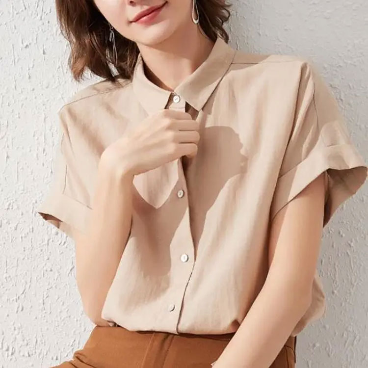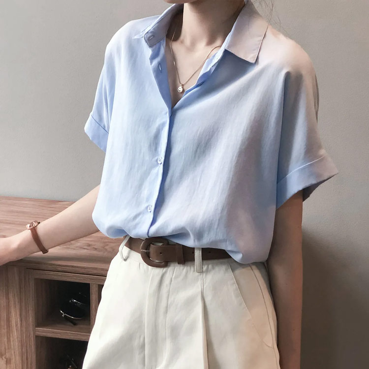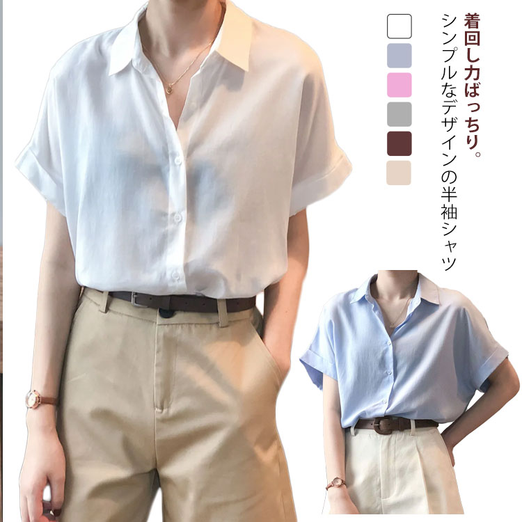 レディース 半袖 襟付き ブラウス シ トップス シャツ ブラウス 割引 ホワイト ブルー ピンク グレー ベージュ ダークブラウン S(42.5-47.5KG) M(47.5-52.5KG) L(52.5-57.5KG) XL(57.5-62.5KG) 2XL(62.5-67.5KG)