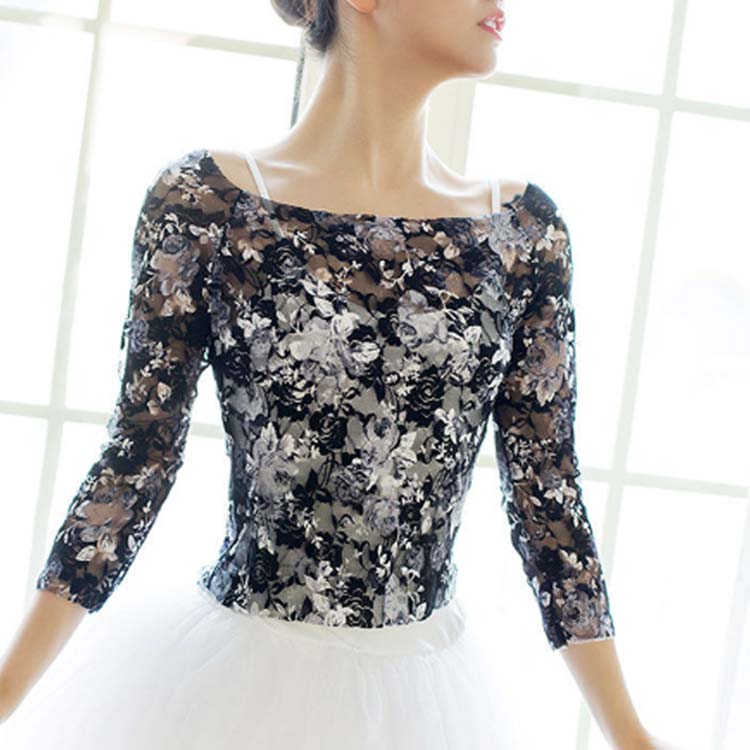 七分袖 ダンス トップス バレエ 花柄 ブラック ホワイト M L XL 2XL 3XL