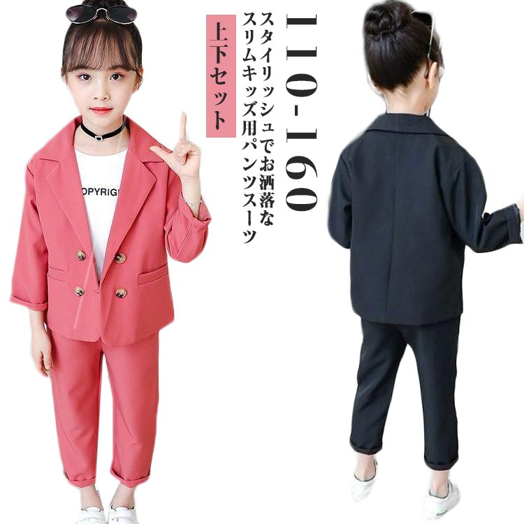 パンツスーツ 子供服 フォーマルスーツ キッズ ベビー マタニティ 豊富な品揃え レッド上下セット ブラック上下セット 110 120 130 140 150 160