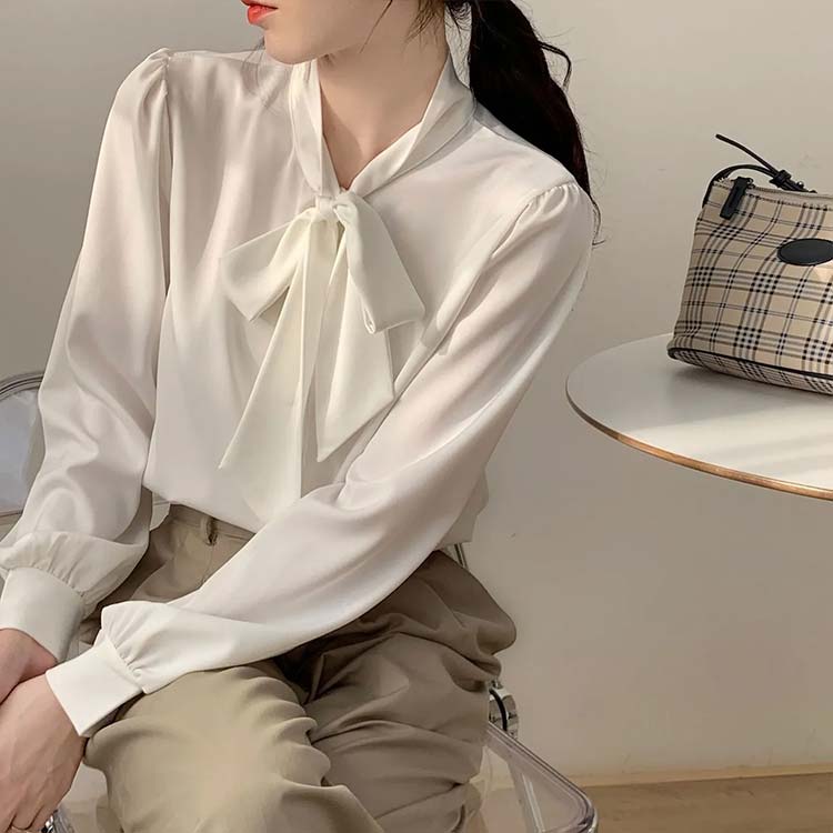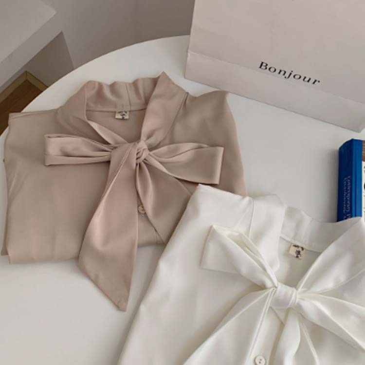 シアースリーブ ドッキングシャツ ボウタイシャツブラウス