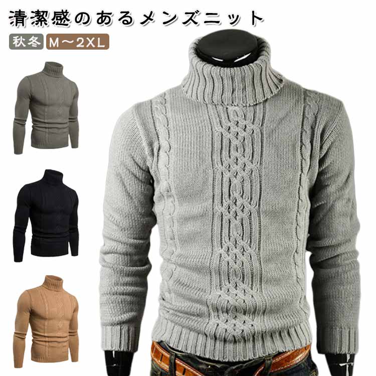 タートルネック ニット 保温 ケーブル メンズファッション 豊富 ベージュ ブラック ダークグレー ライトグレー M L XL 2XL