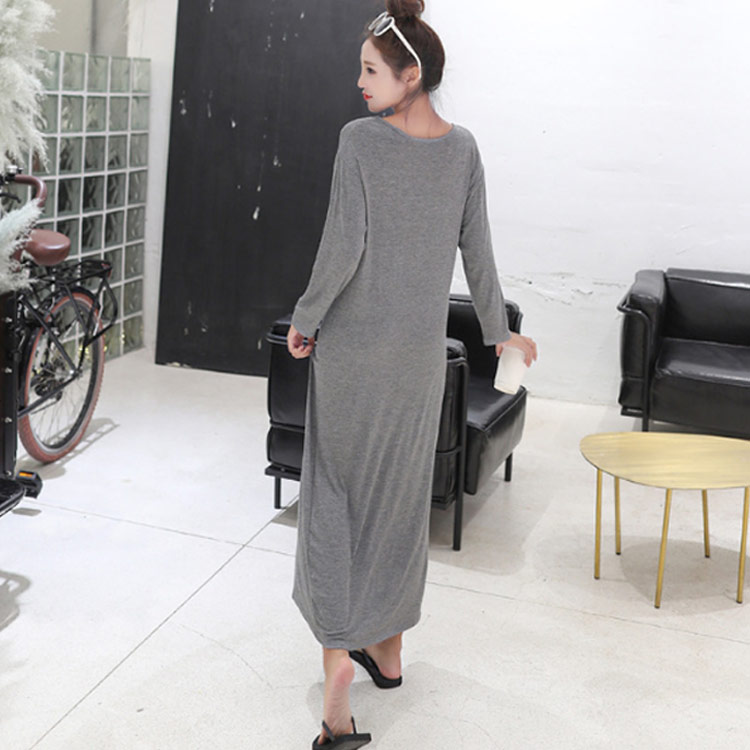 マキシワンピース 長袖 春ワンピース ワンピース 続々登場 ブラック ライトグレー ワイン ネイビー ダックグレー S M L XL