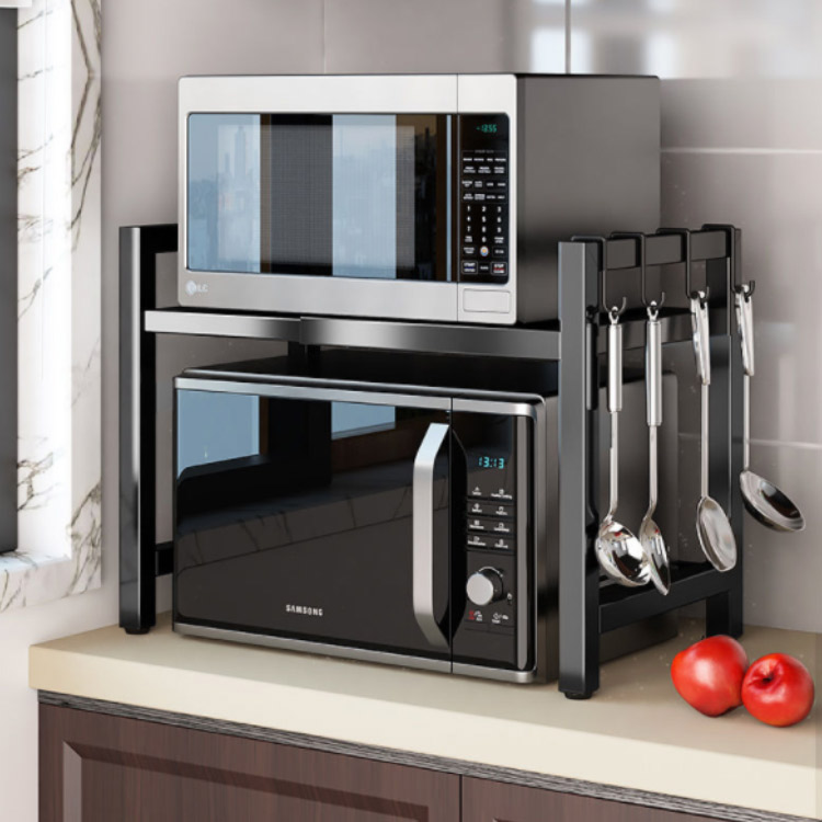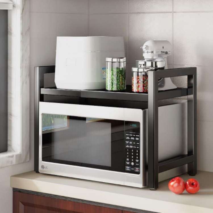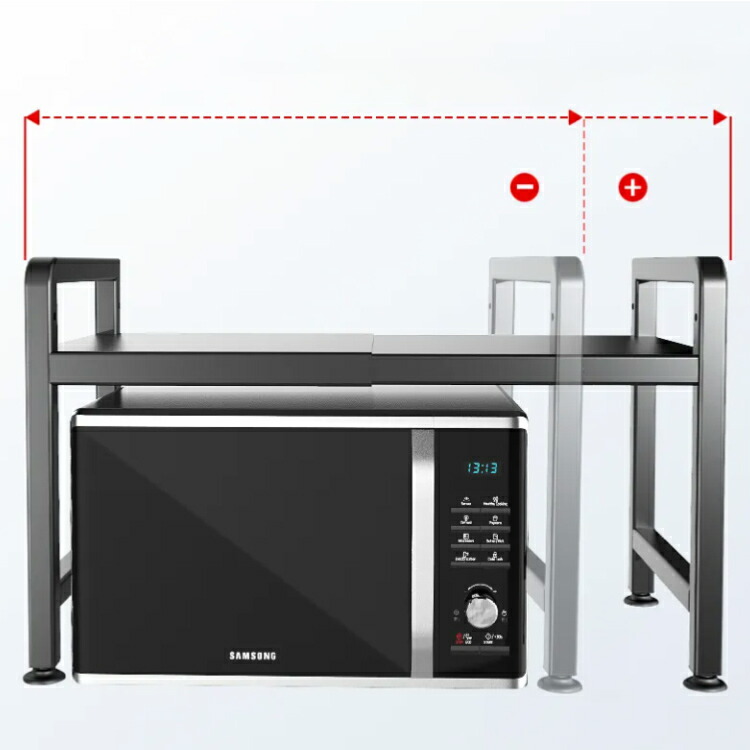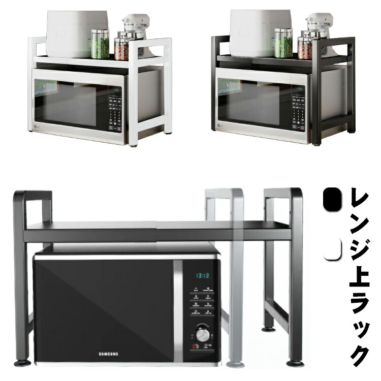 レンジ上ラック 伸縮式 2段式 電子レ ホワイト ブラック