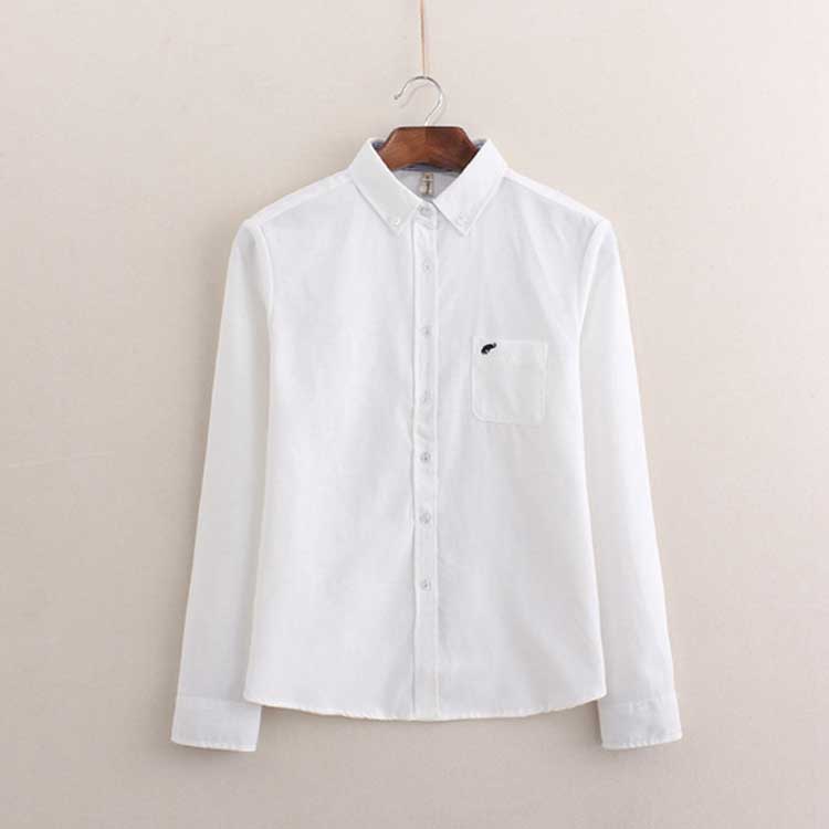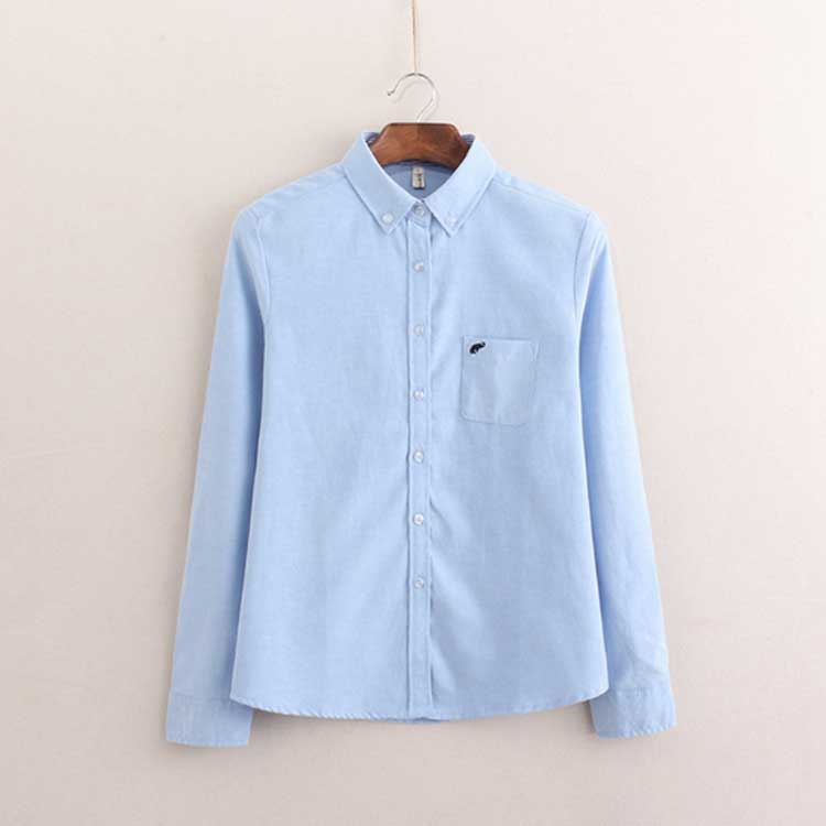 白シャツ 象 刺繍 シャツ オックスフ レディースファッション 続々登場 ホワイト ブルー S M L XL