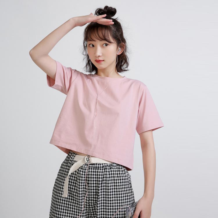 ショートTシャツ レディース カットソ レディースファッション 特集 ブラック パープル ピンク ホワイト グリーン ライトブルー S M L XL