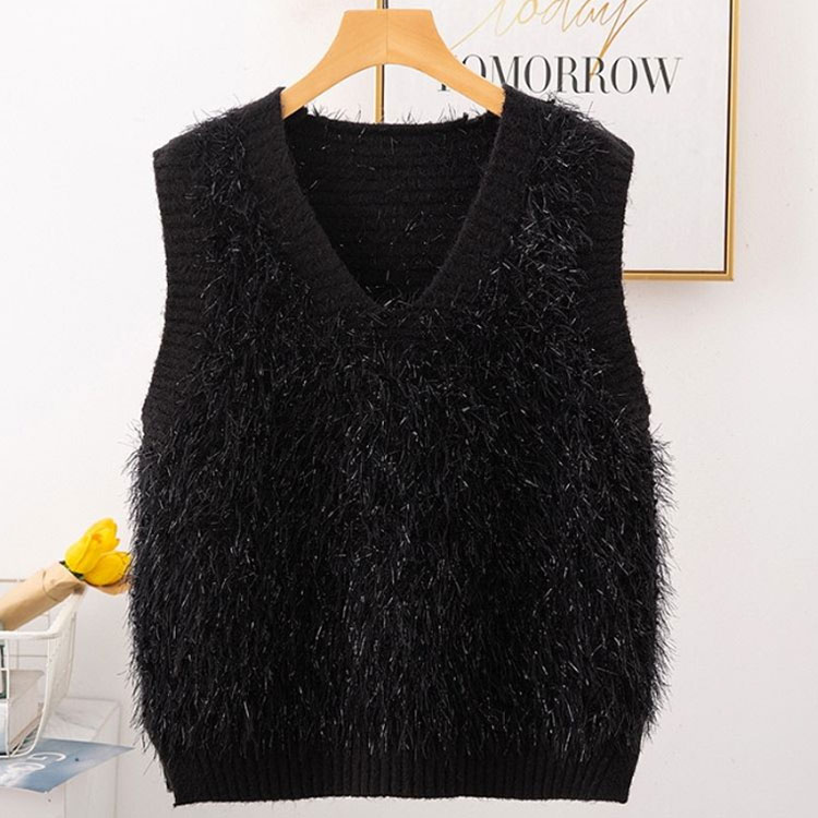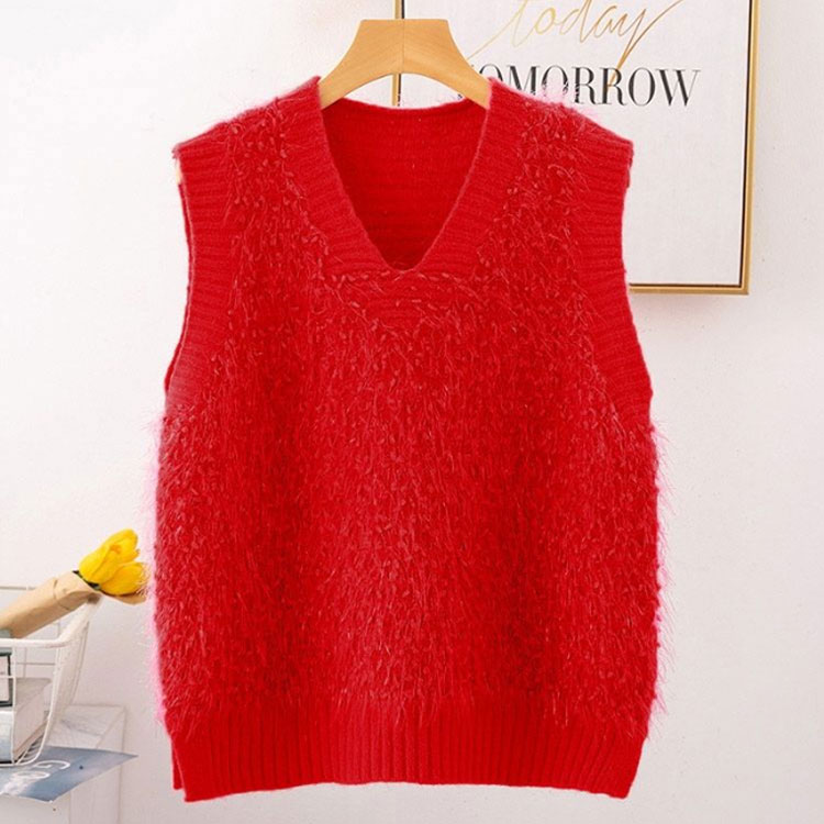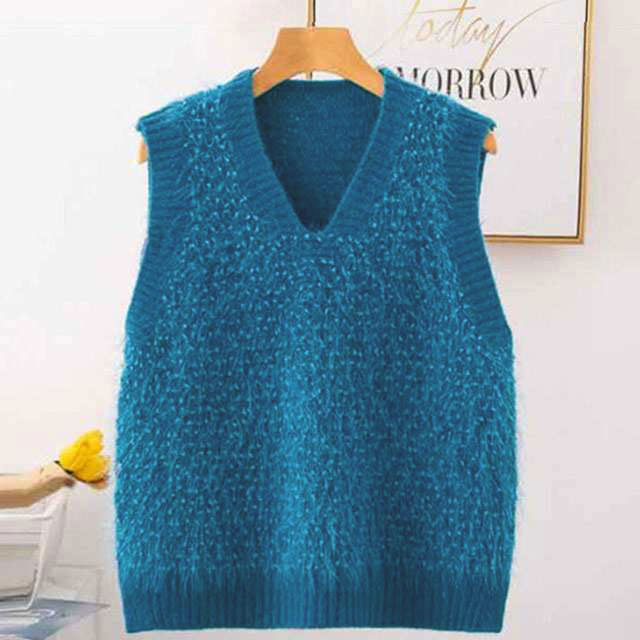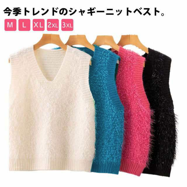 シャギーニットベスト トップス レディ レディースファッション 豊富 ブルー レッド オフホワイト ブラック M L XL 2XL 3XL