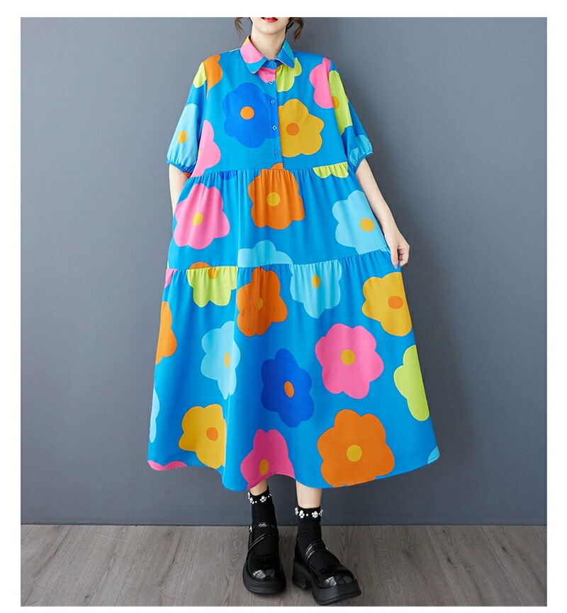 ワンピース ロングワンピース 半袖 春 ワンピース 続々登場 ホワイト ブルー