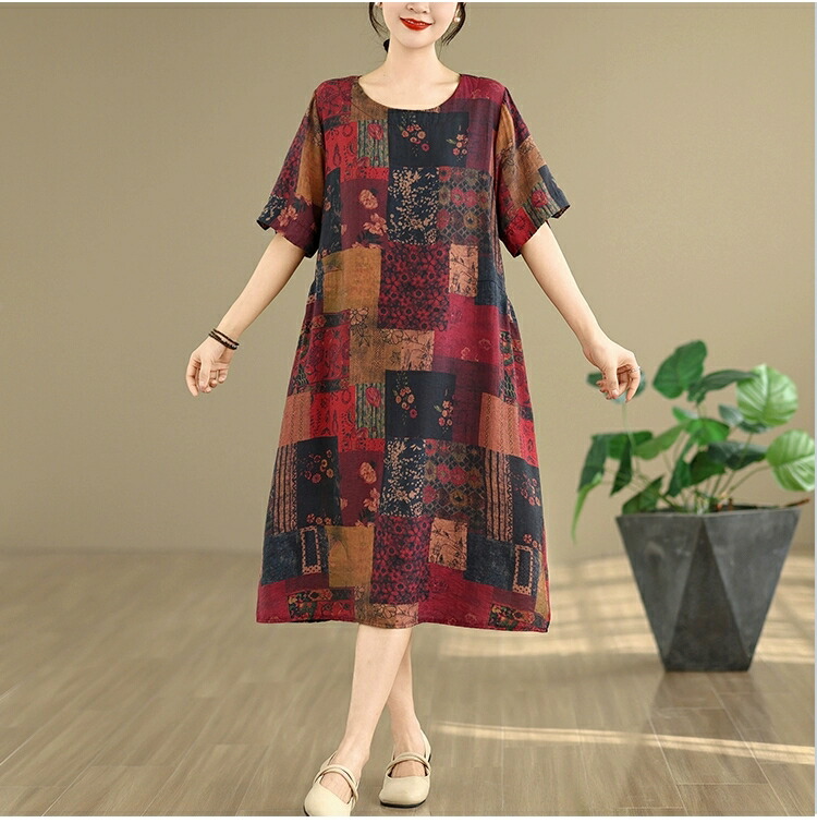 チュニック 半袖 ワンピ ロングワンピ レディースファッション 続々登場 ライトブラウン レット