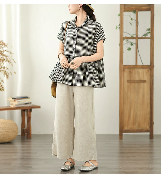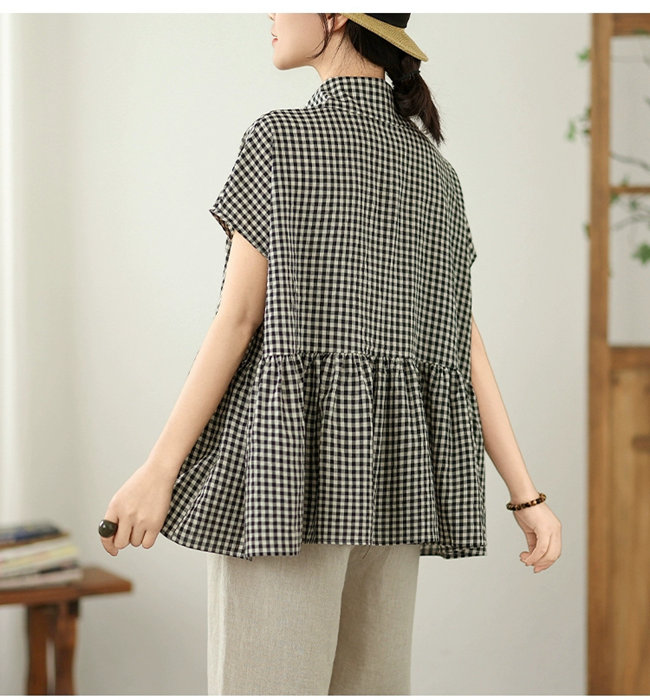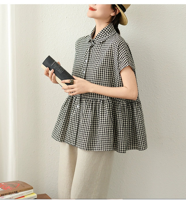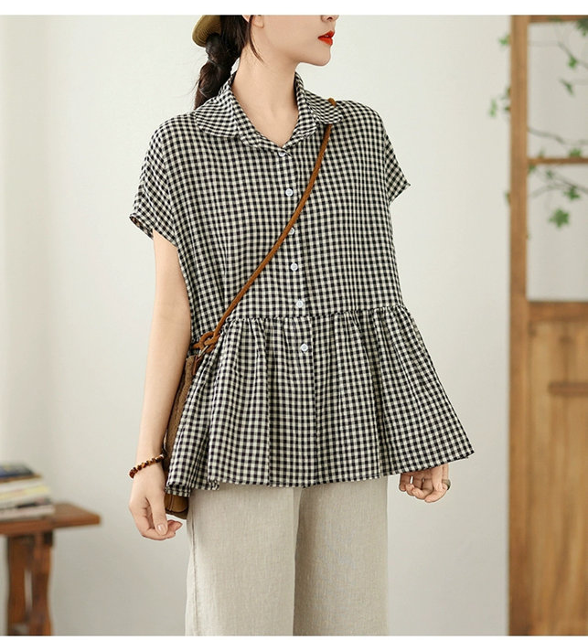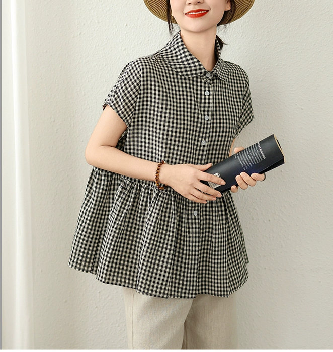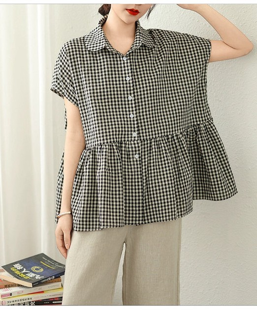 シャツ チェック 春夏 レディース 半 トップス シャツ ブラウス 割引 M L XL