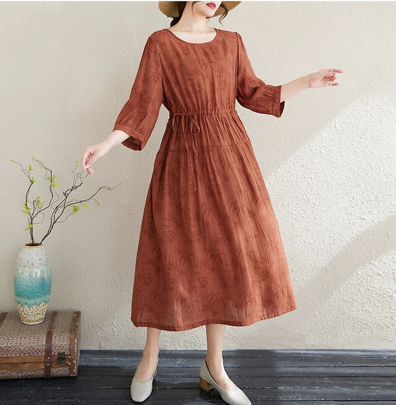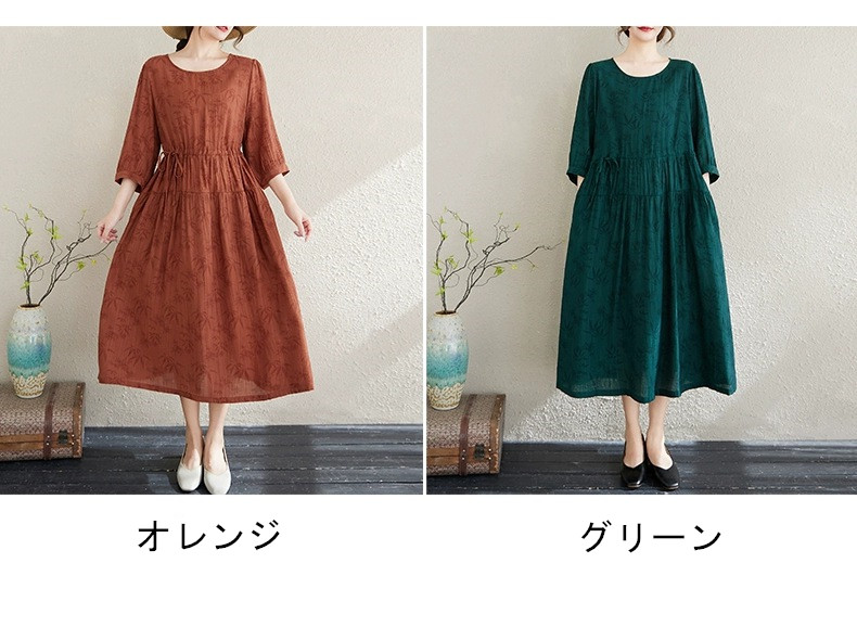 ワンピ ロングワンピース 五分袖 きれ ワンピース 42%Off M L XL 2XL オレンジ クリーン