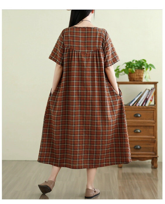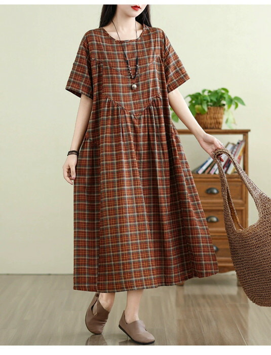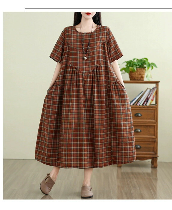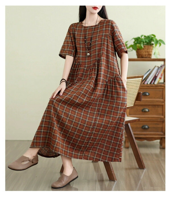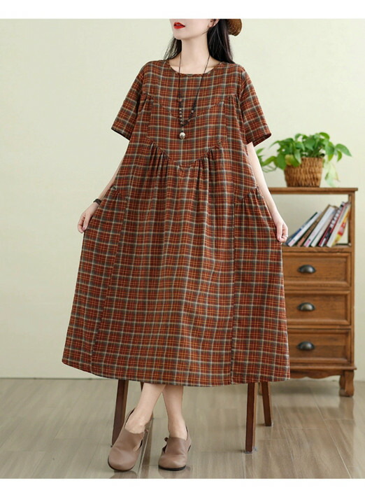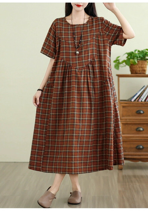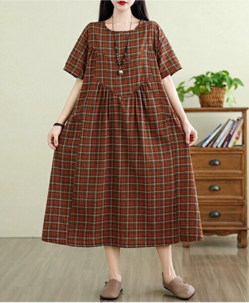 チェック ロングワンピース 春夏 半袖 レディースファッション 42%Off L XL