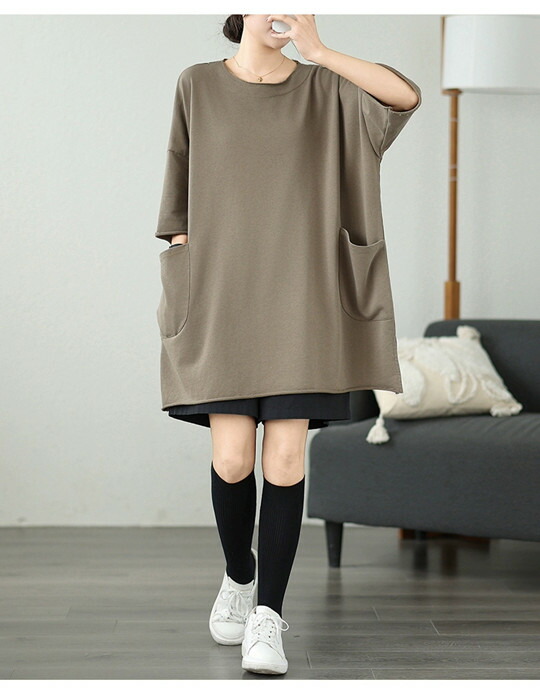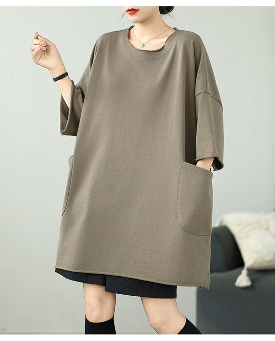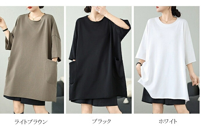 チュニック Tシャツ ロング ワンピー ワンピース 42%Off ライトブラウン ブラック ホワイト
