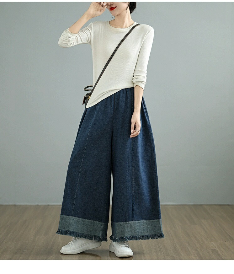 ロング デニム ワイドパンツ デニムパ ボトムス パンツ 続々登場 L XL