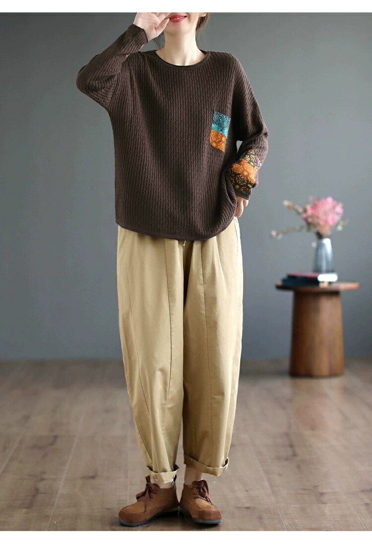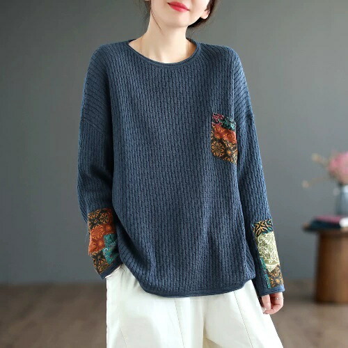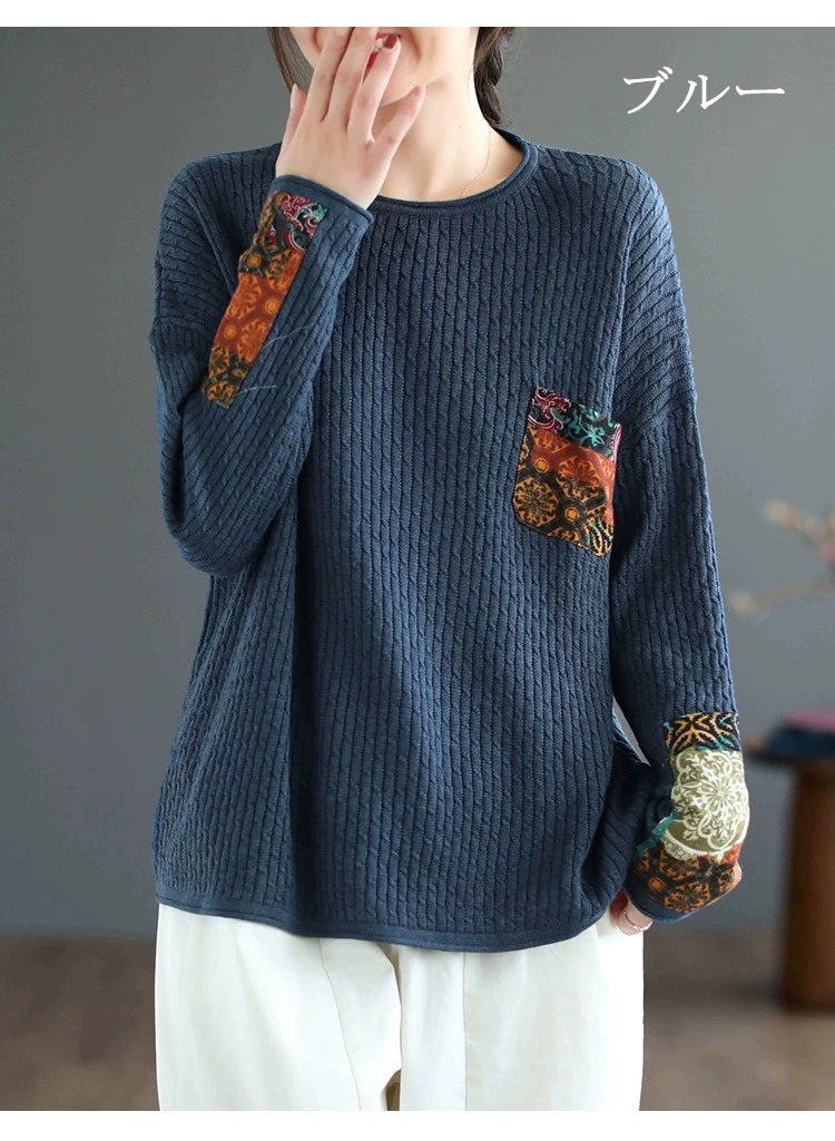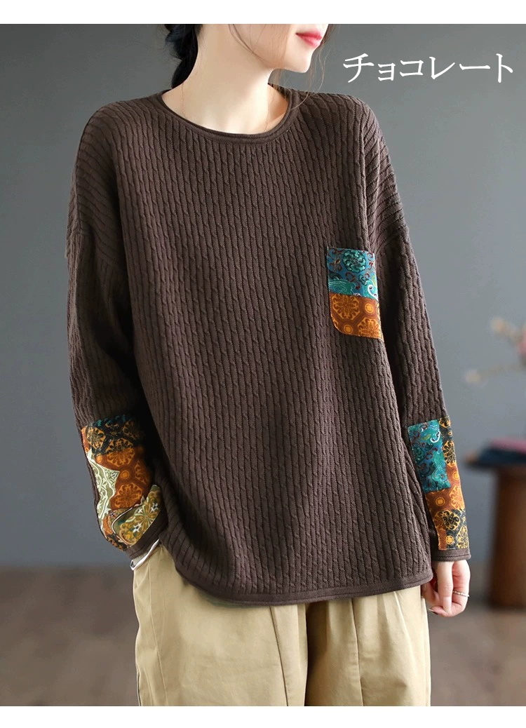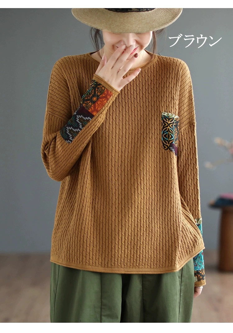 ニット チュニック 秋冬 長袖 トップ トップス ニット セーター セーター 豊富な品揃え ブラウン チョコレート ブルー