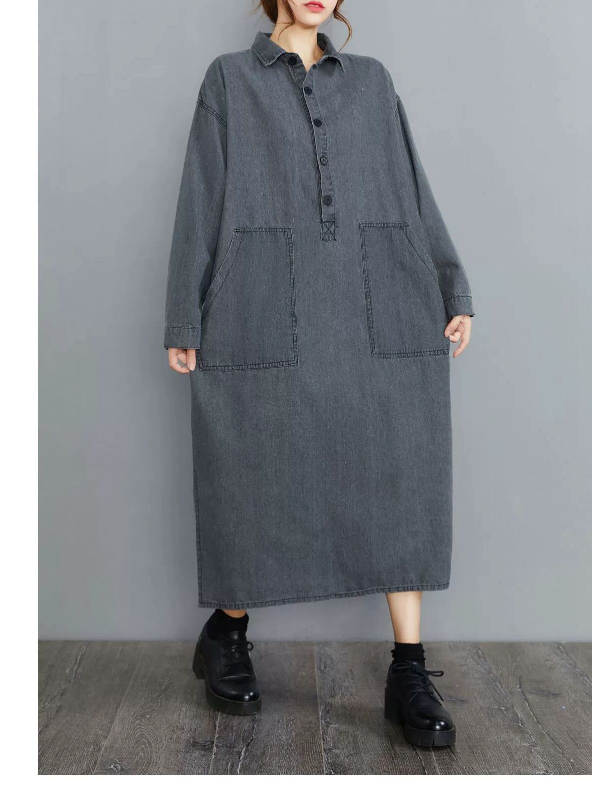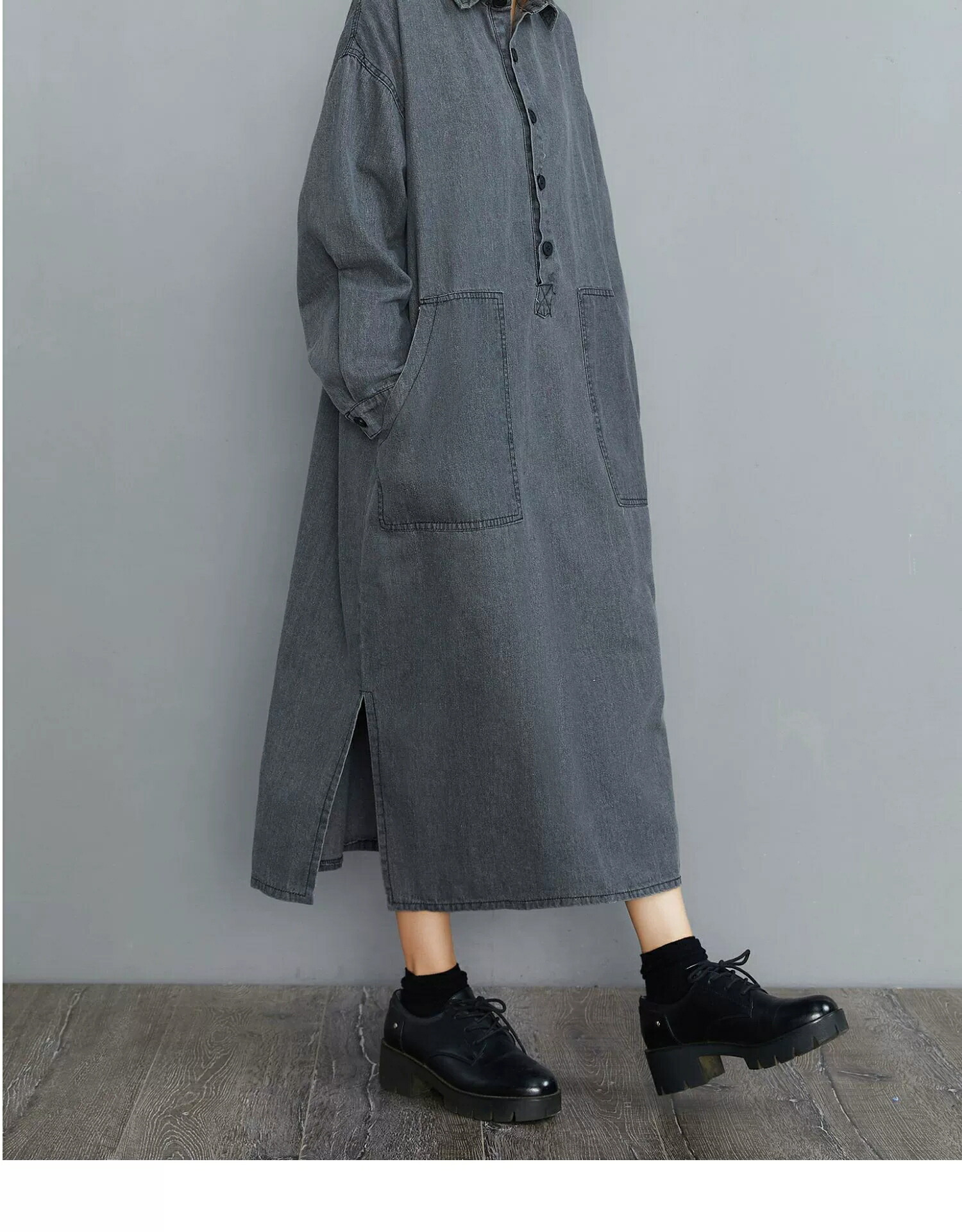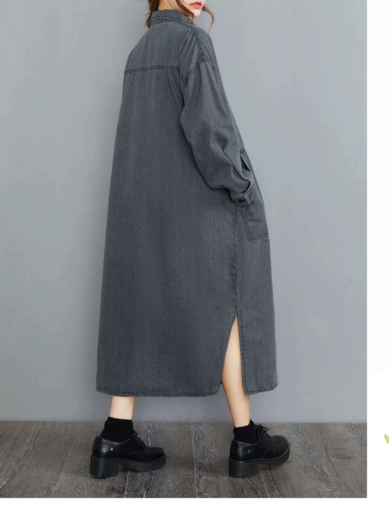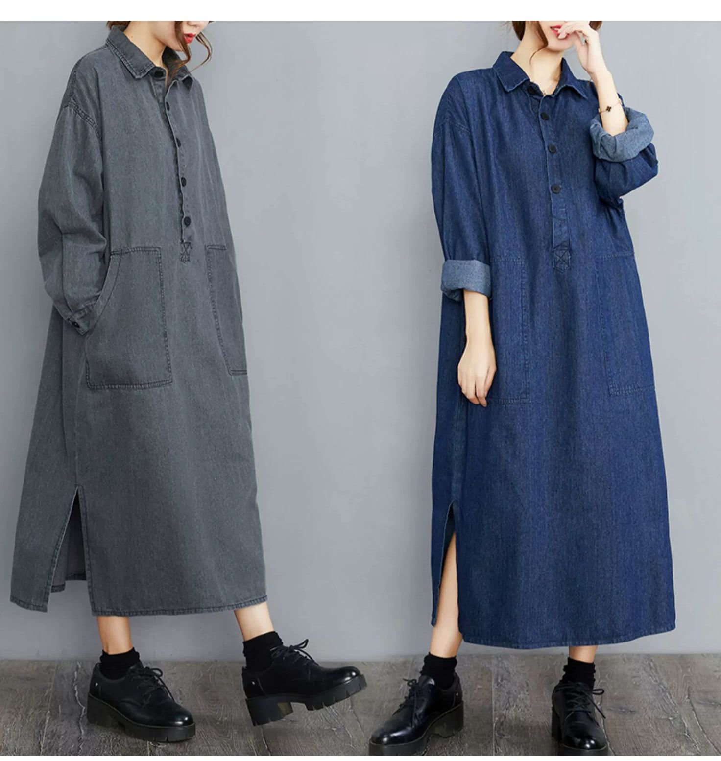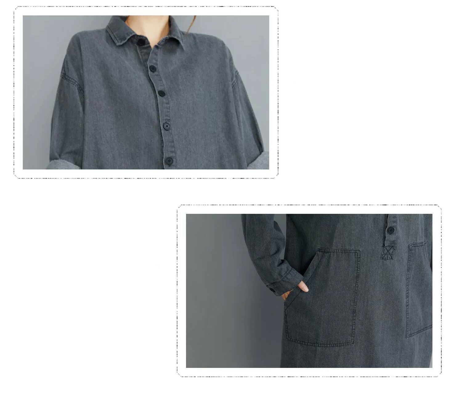 デニム 秋 ワンピース シャツワンピー レディースファッション 42%Off グレー ブルー L XL