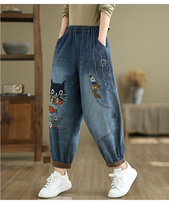デニムパンツ ロング レディース 春秋 レディースファッション 44%Off M L XL 2XL ブラック ブルー