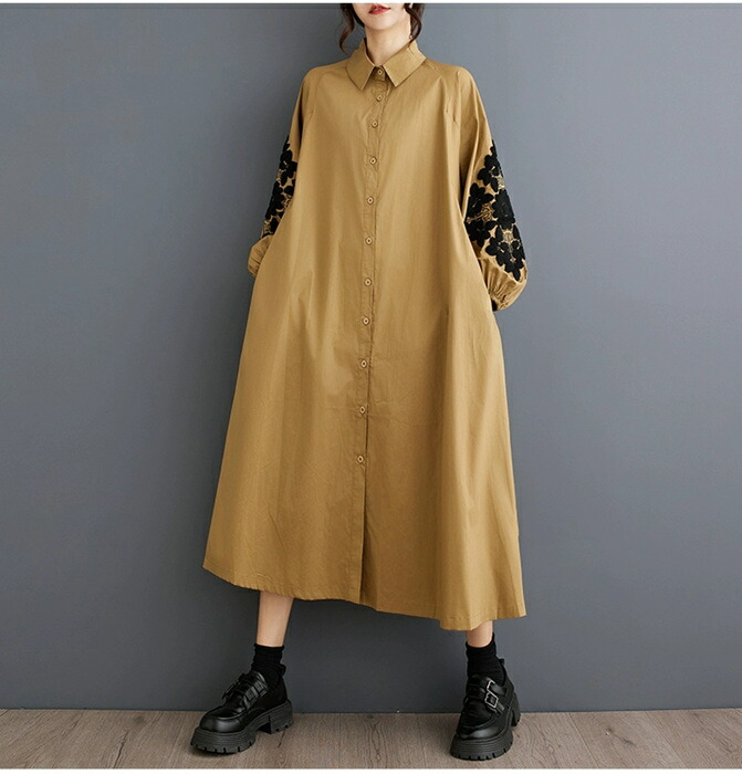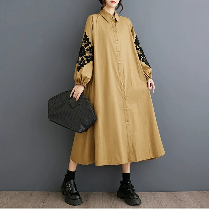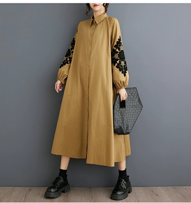 秋 ワンピース マキシワンピース シャ ワンピース 続々登場 ブラウン ブラック