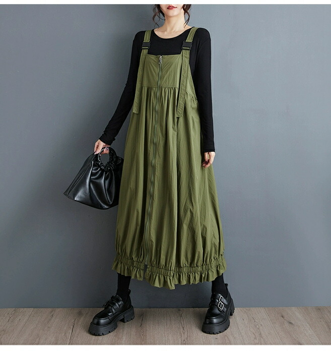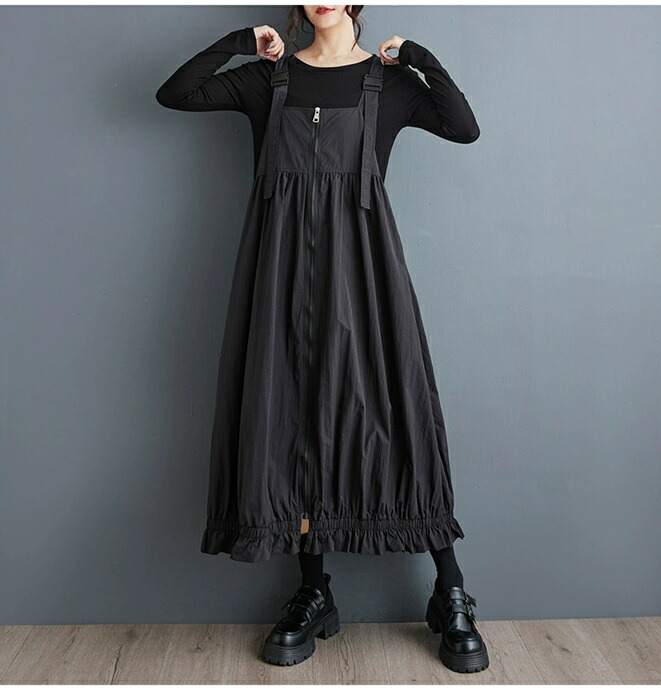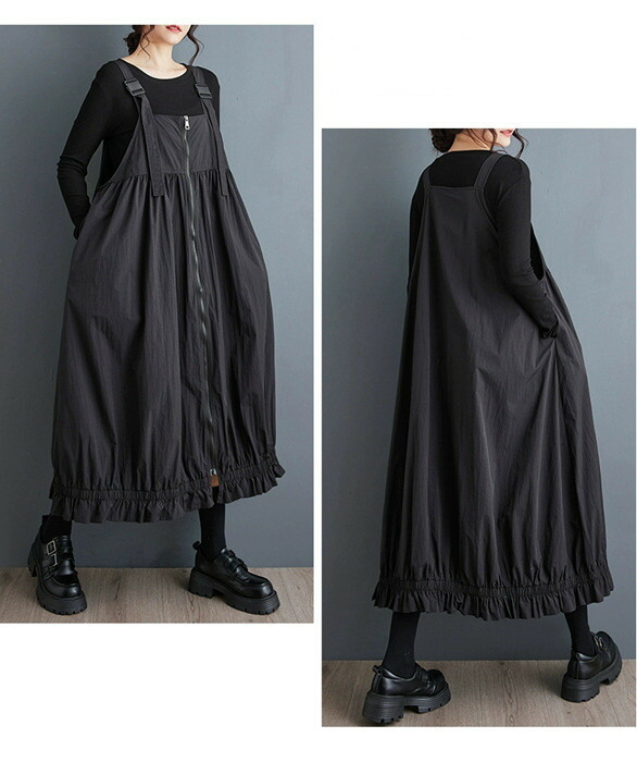 マキシ ジャンパースカート ワンピース ブラック クリーン