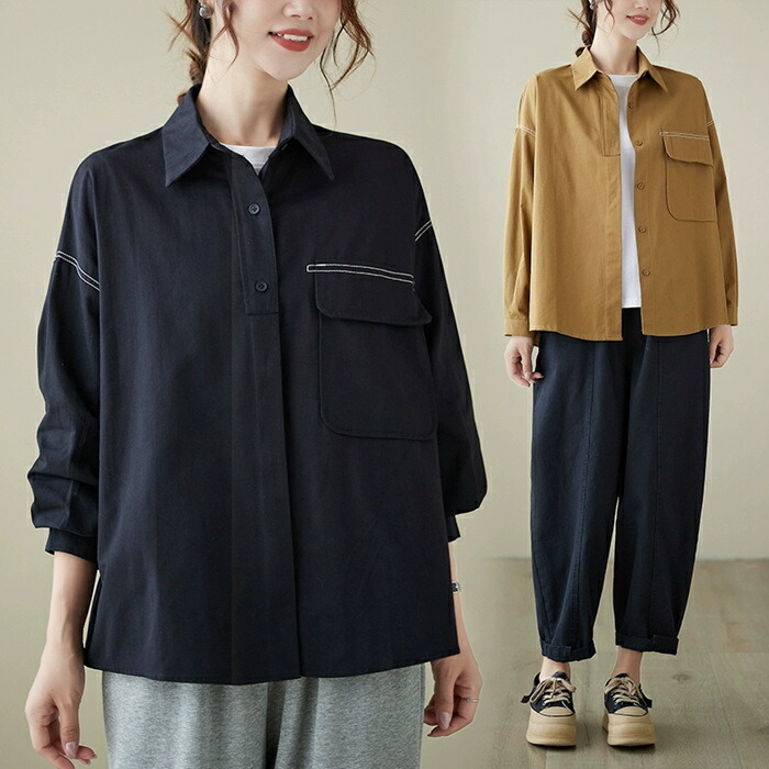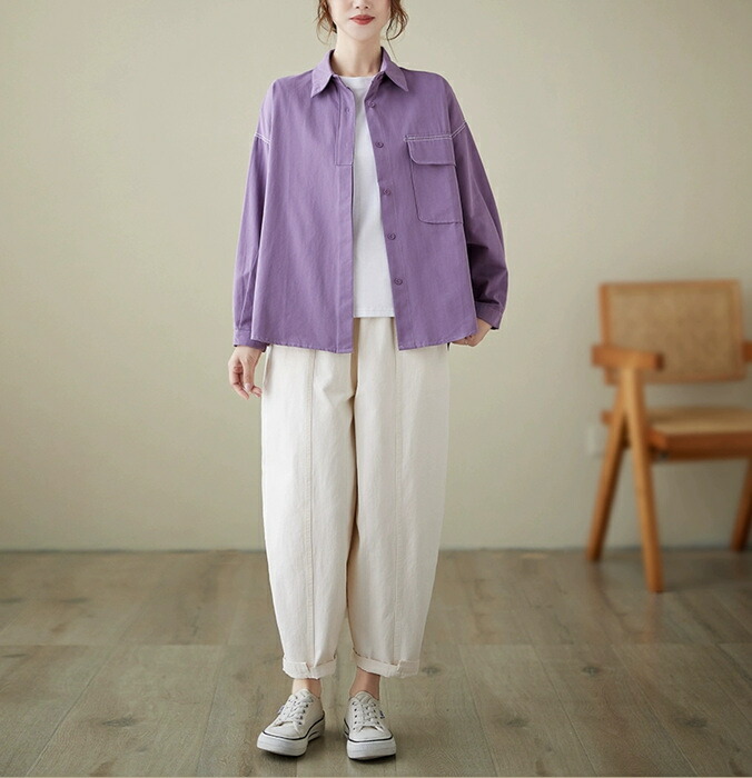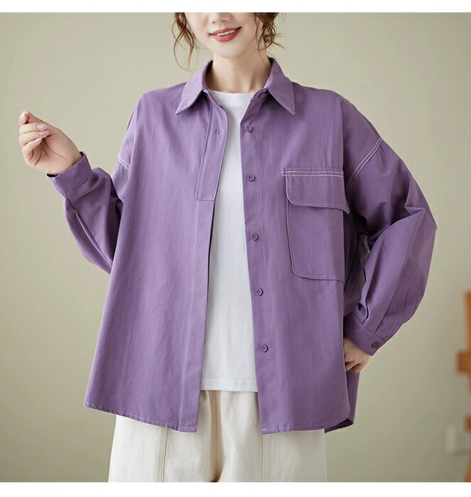 シャツ トップス ブラウス 春秋 長袖 レディースファッション 42%Off パープル ブラック ホワイト ブラウン M L XL 2XL