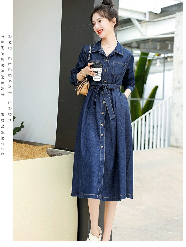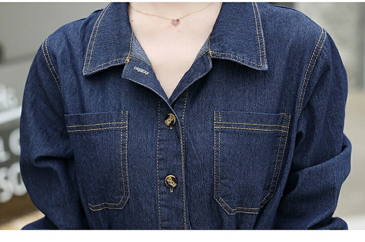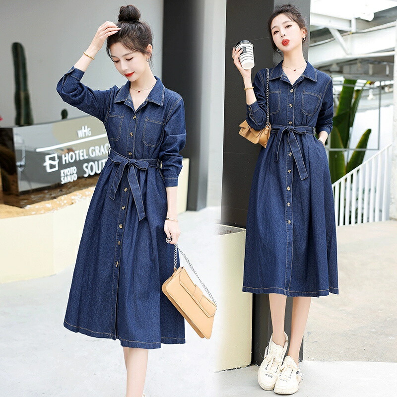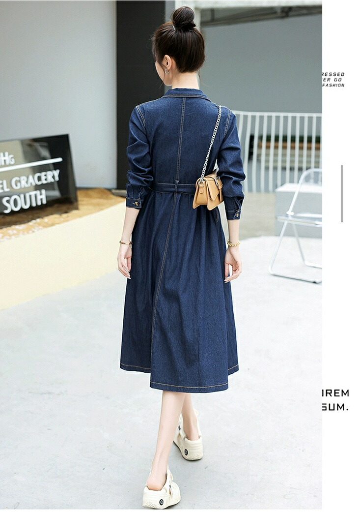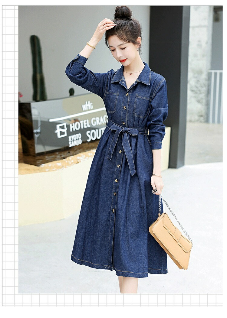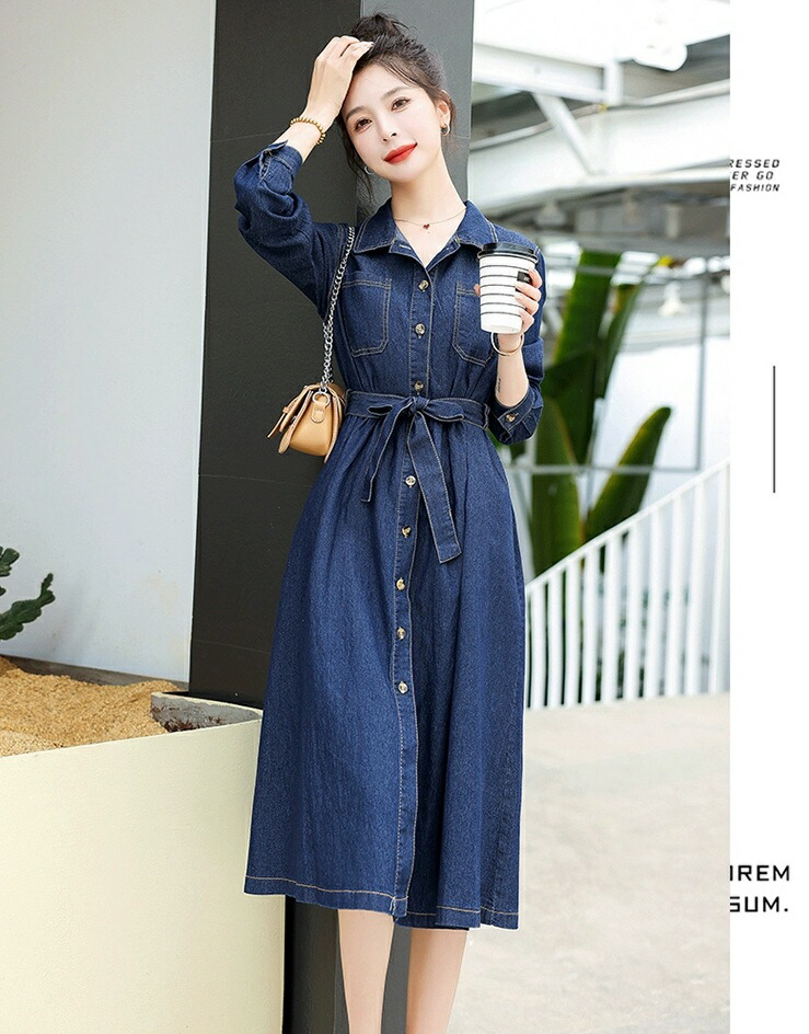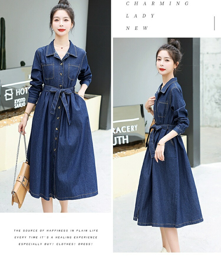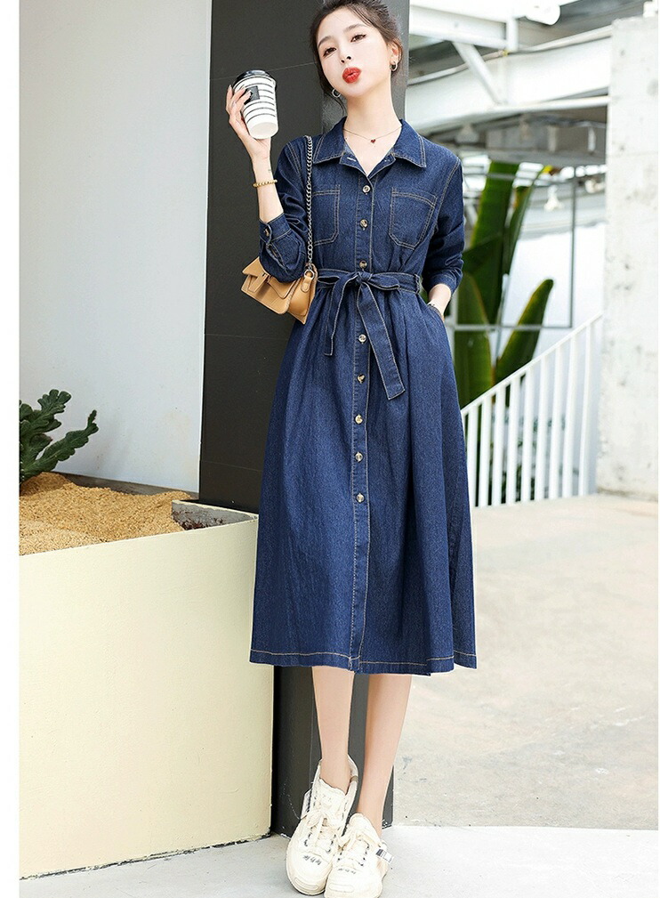 シャツワンピース デニム ロングワンピ ワンピース 続々登場 S M L XL 2XL