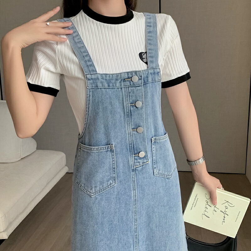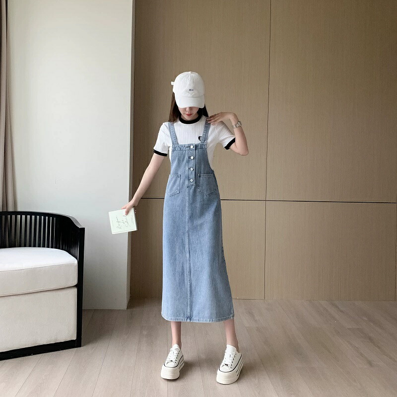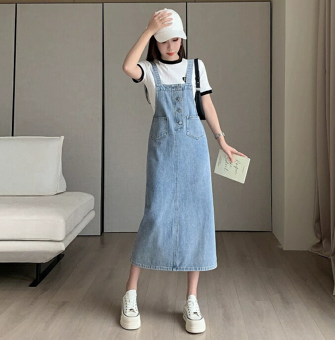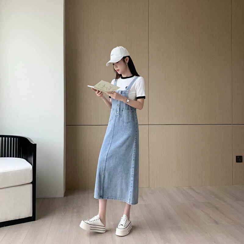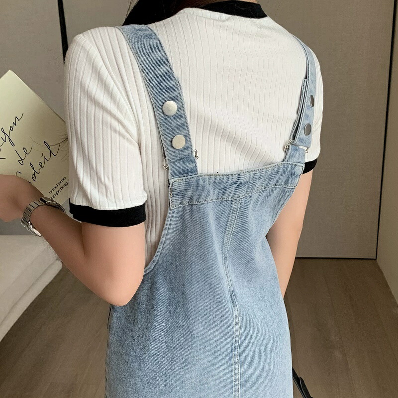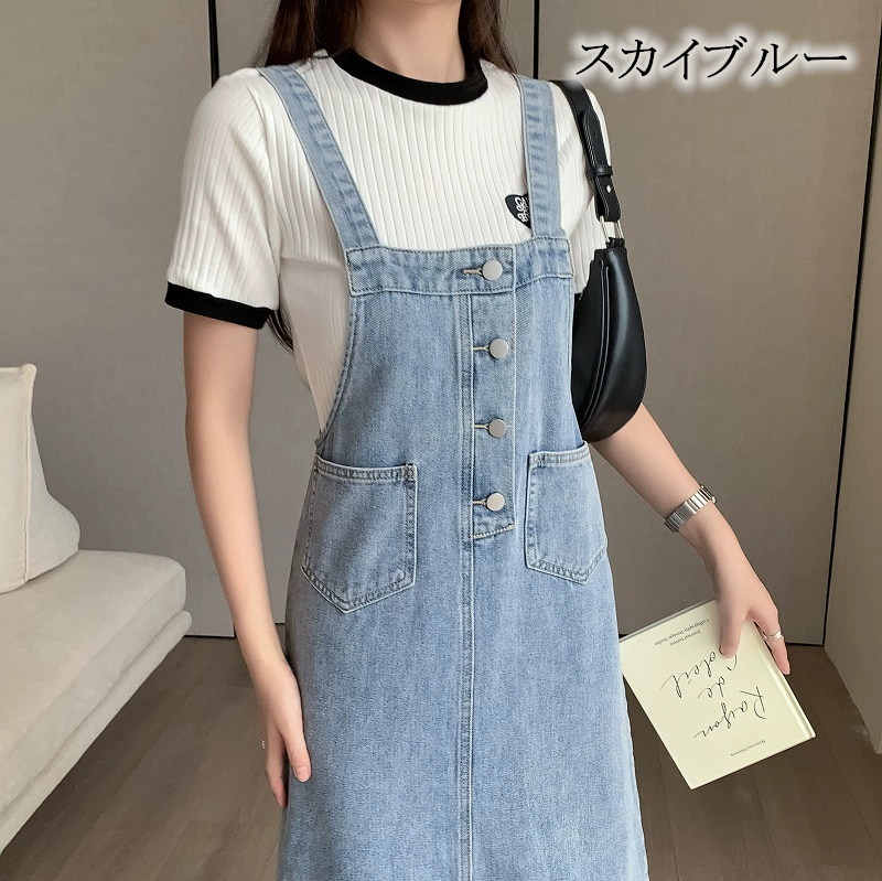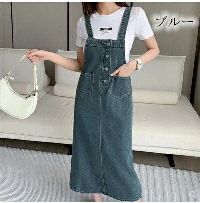 ジャンパースカート デニム ロング レ S M L XL 2XL 3XL ブルー スカイブルー