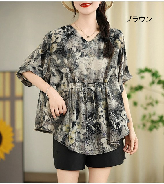 チュニック 大人可愛い 夏 ブラウス トップス シャツ ブラウス 割引 ブラック ブラウン