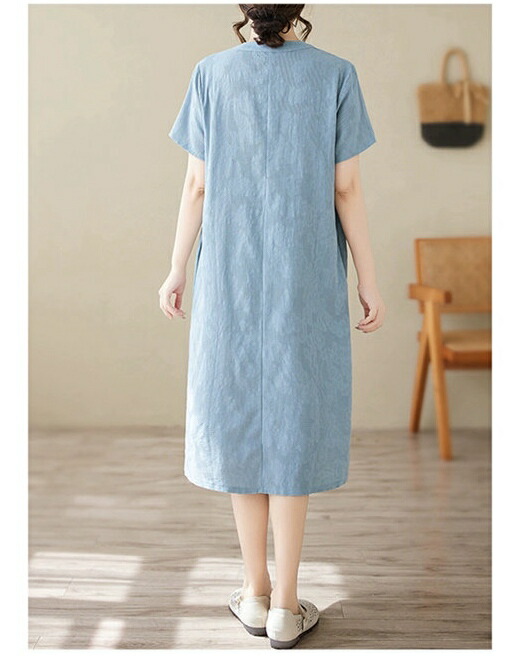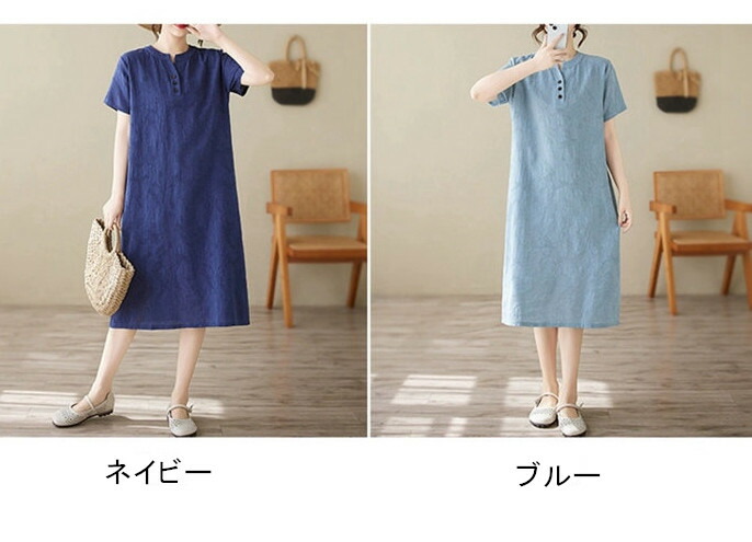 ワンピース 夏 チュニック ロングワン ワンピース 続々登場 ブルー ネイビー M L XL 2XL