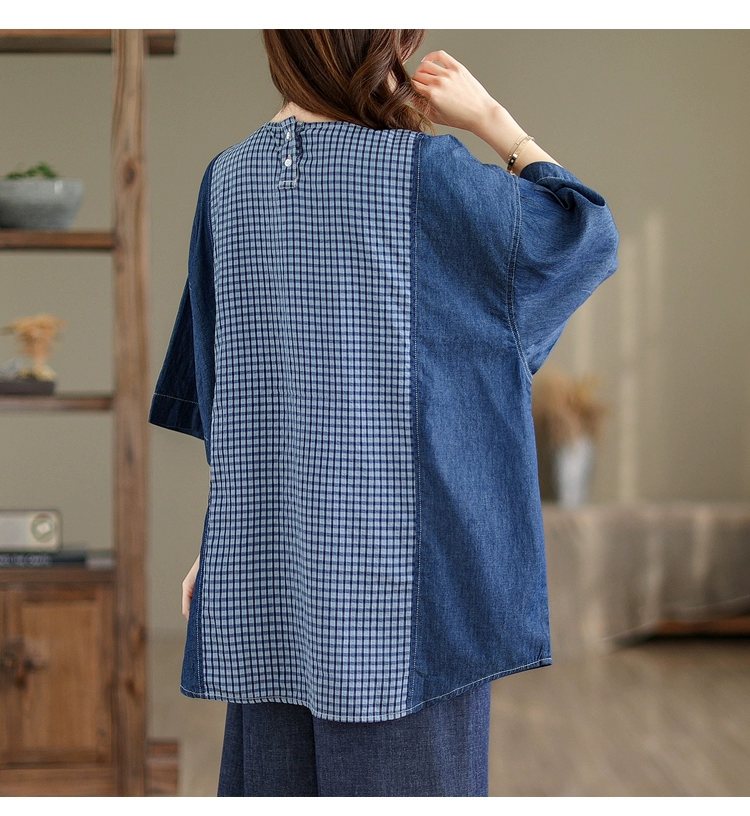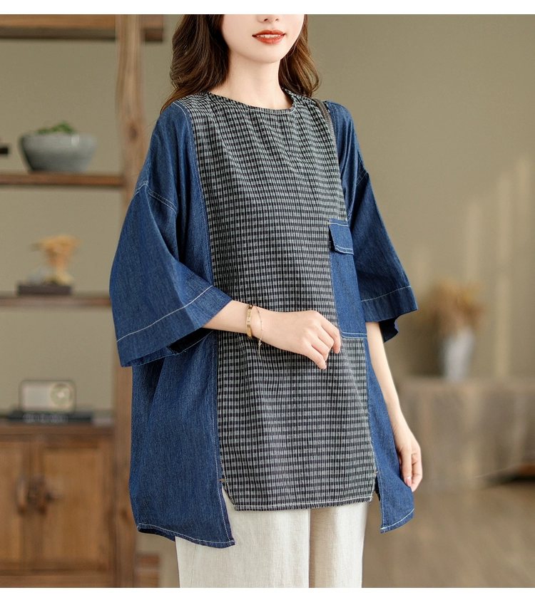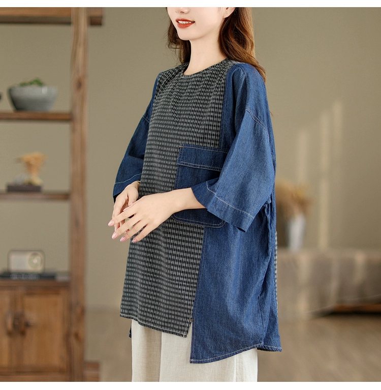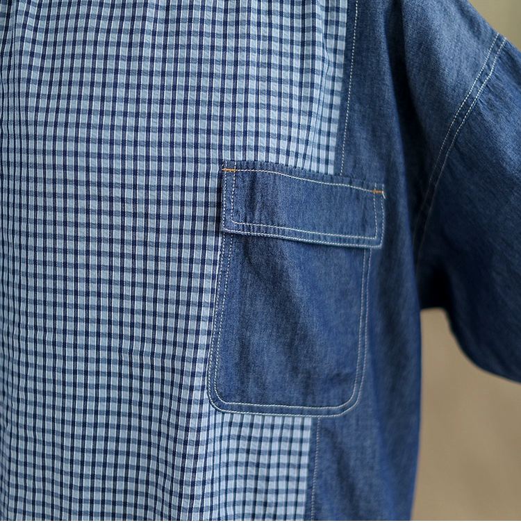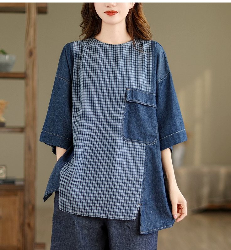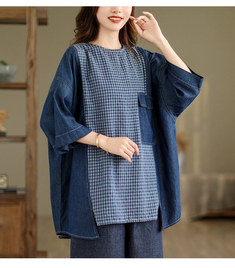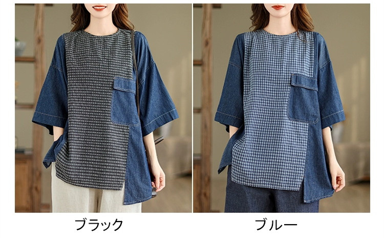 デニム チュニック チェック ブラウス レディースファッション 続々登場 ブラック ブルー M L XL 2XL