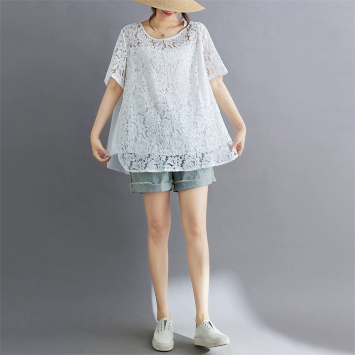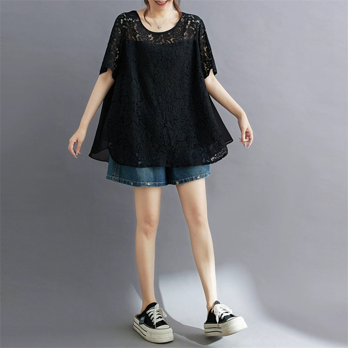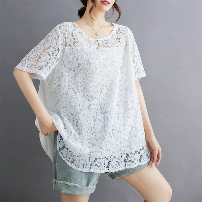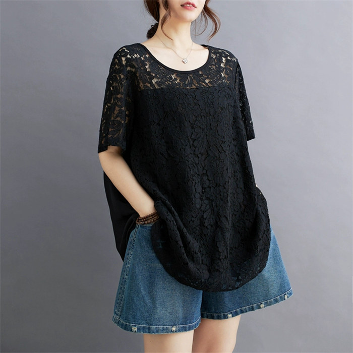 チュニック レース シャツ ブラウス レディースファッション 続々入荷中 ブラック ホワイト L XL 2XL