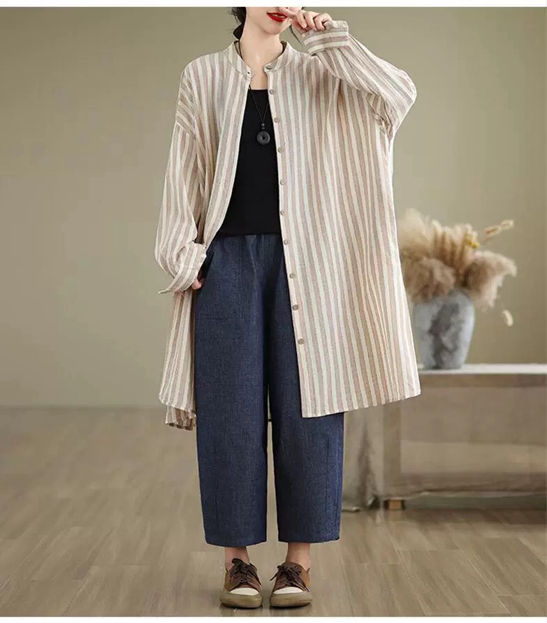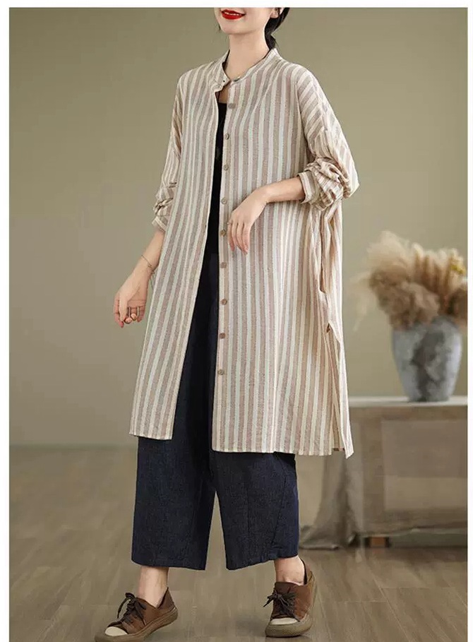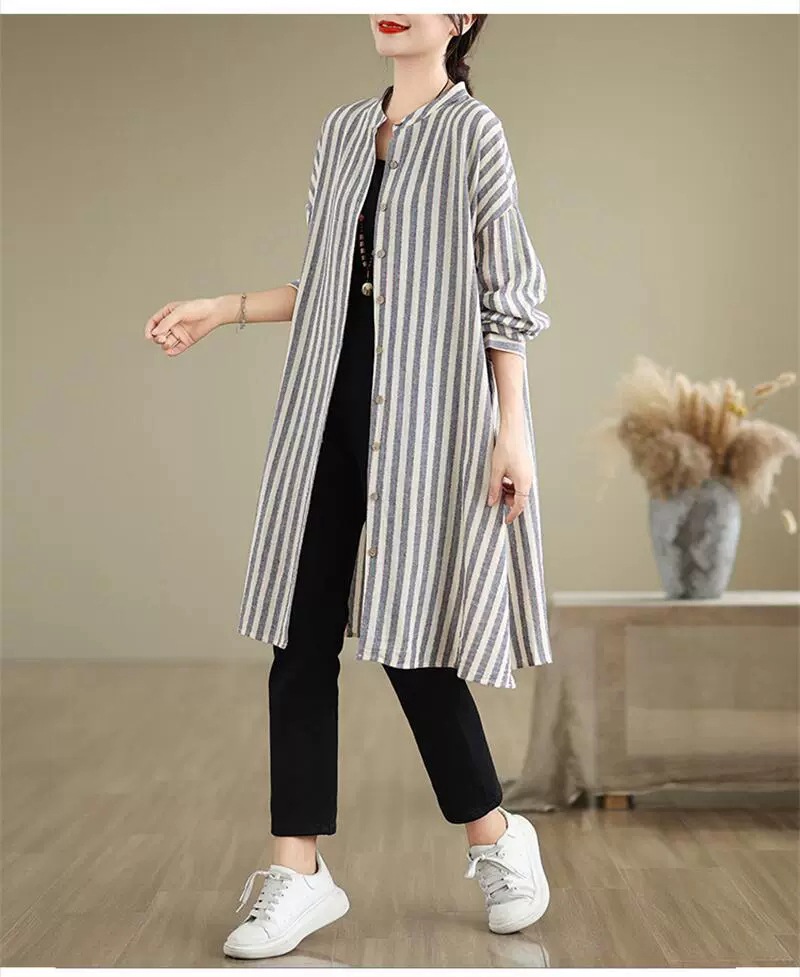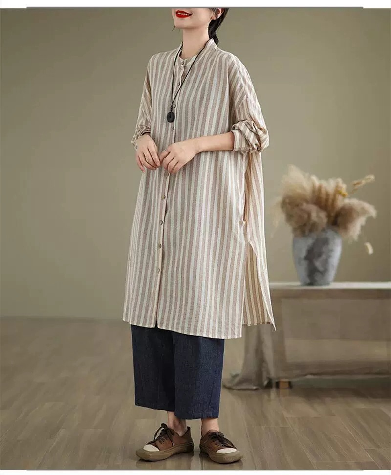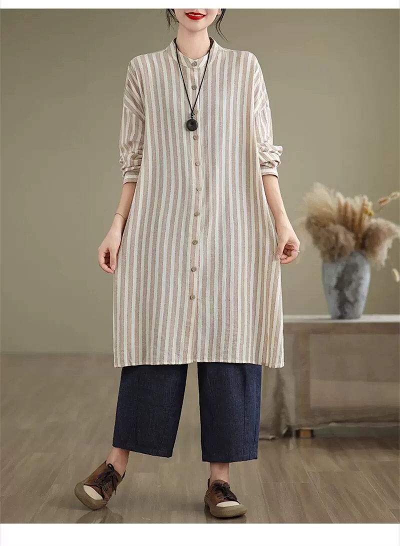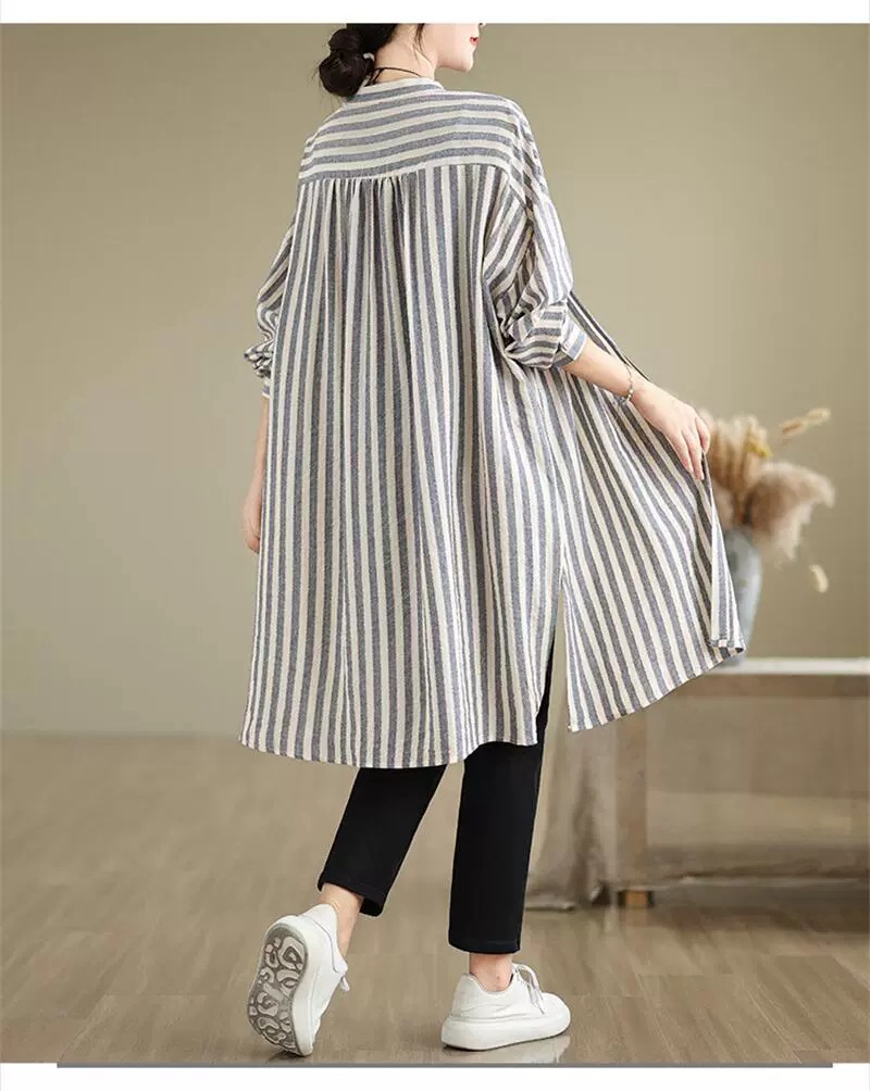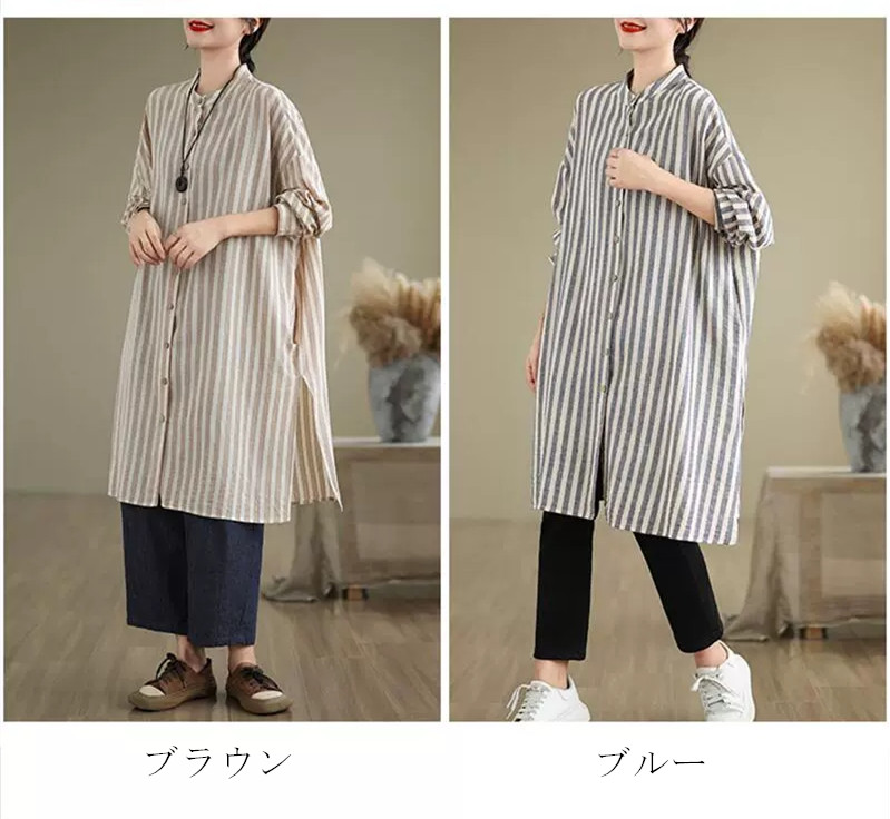 ロングシャツ ストライプ チュニック レディースファッション 42%Off M L XL 2XL ブルー ブラウン