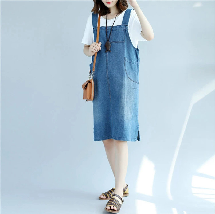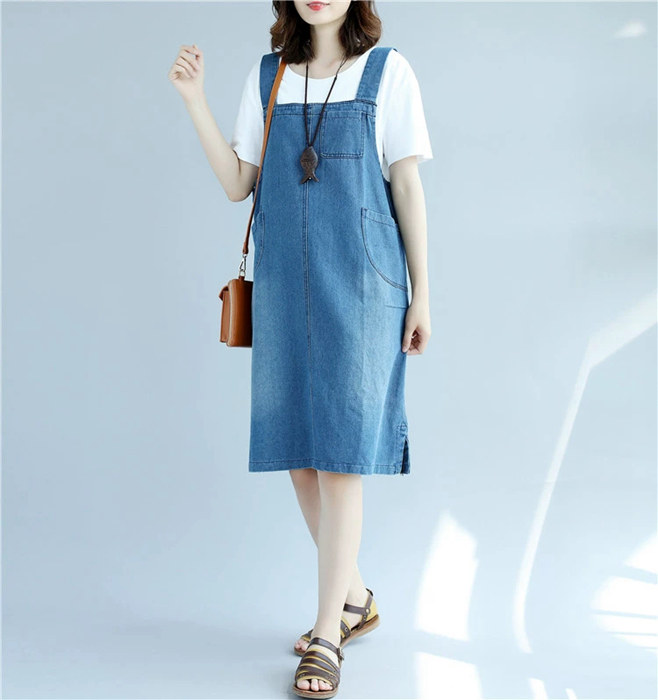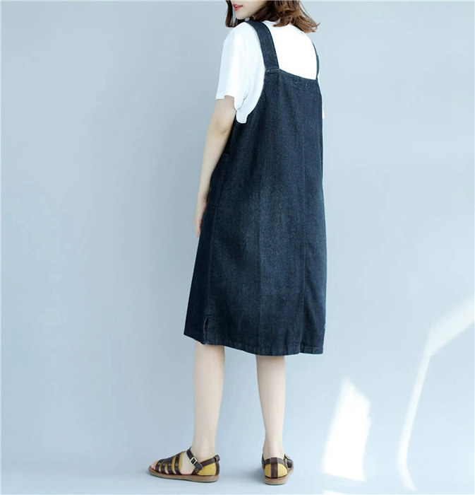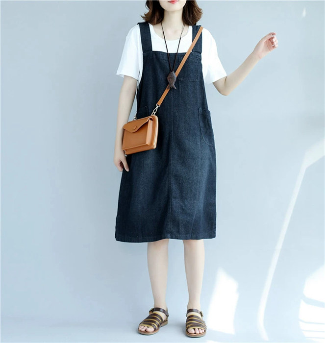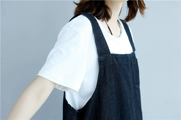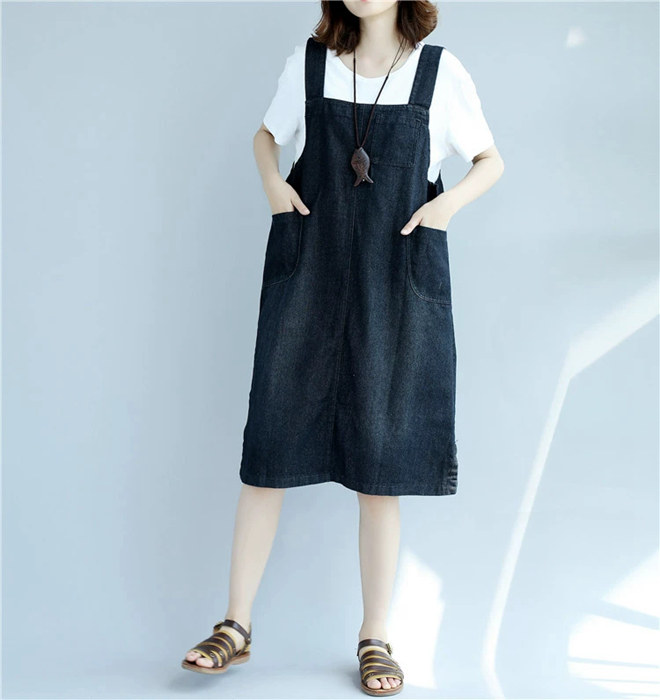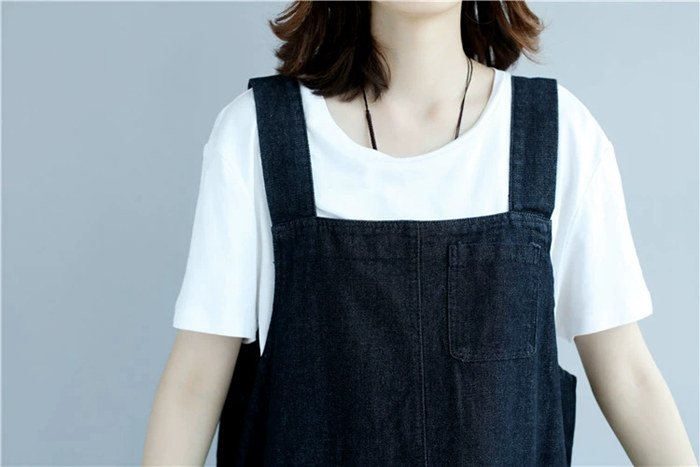 デニム ジャンパースカート デニムサロ ワンピース 続々登場 L 2XL ブラック ブルー