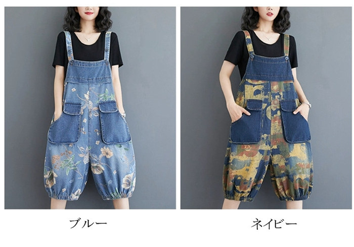 デニム 夏 サロペット オーバーオール レディースファッション 割引 M L XL 2XL ブルー ネイビー