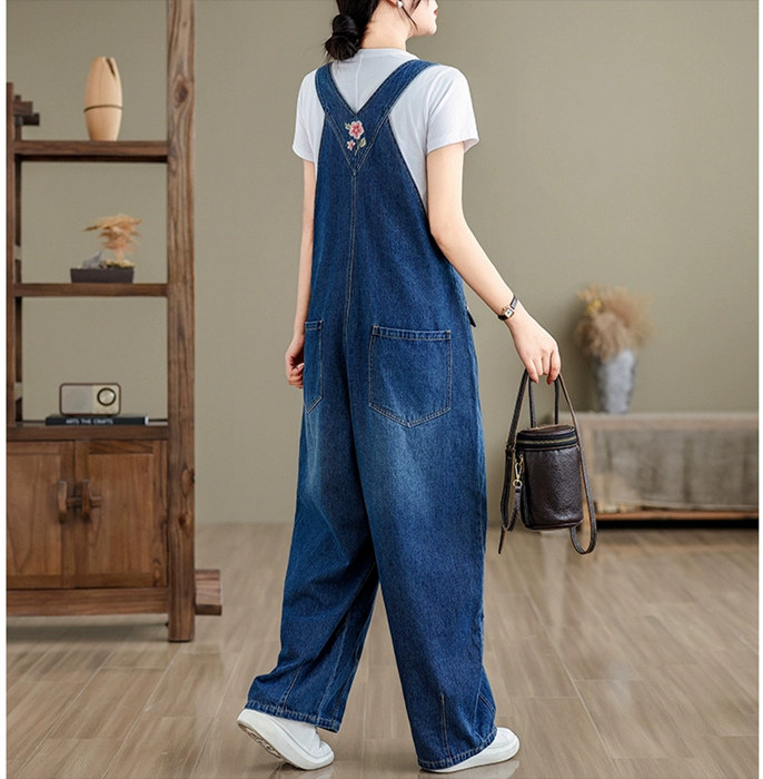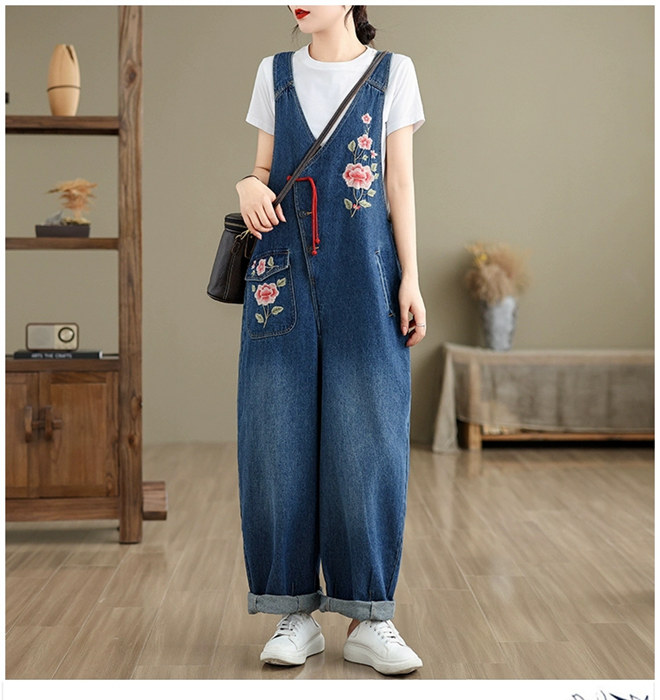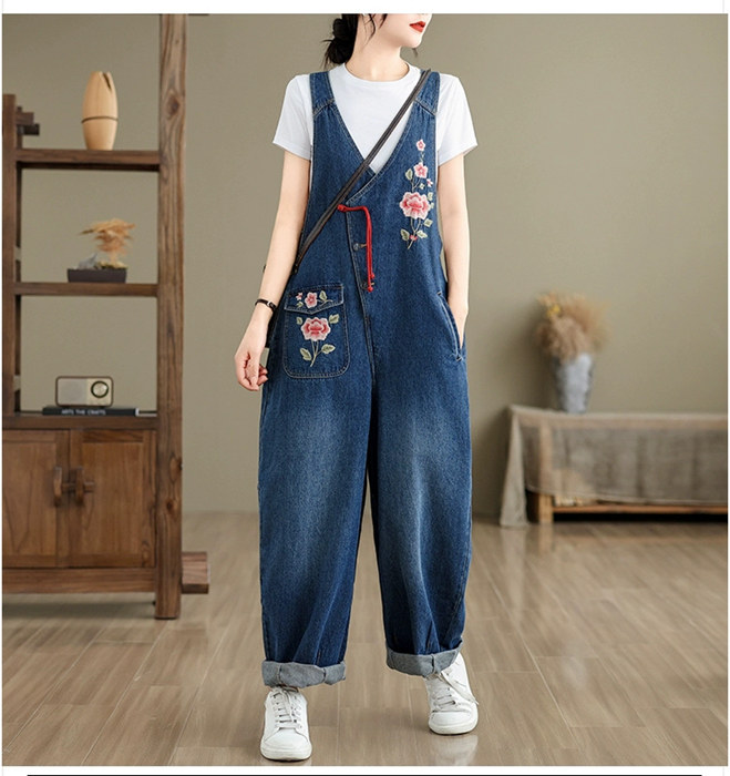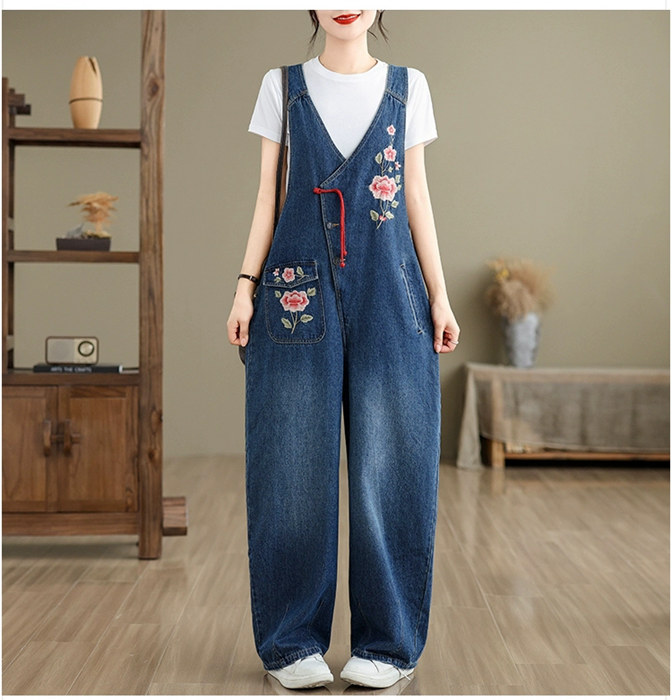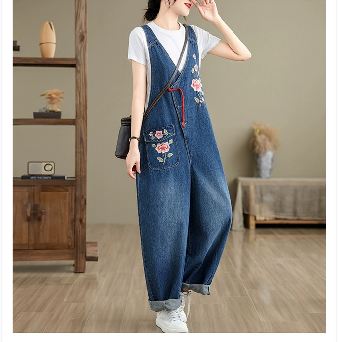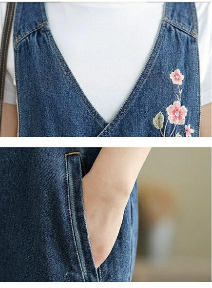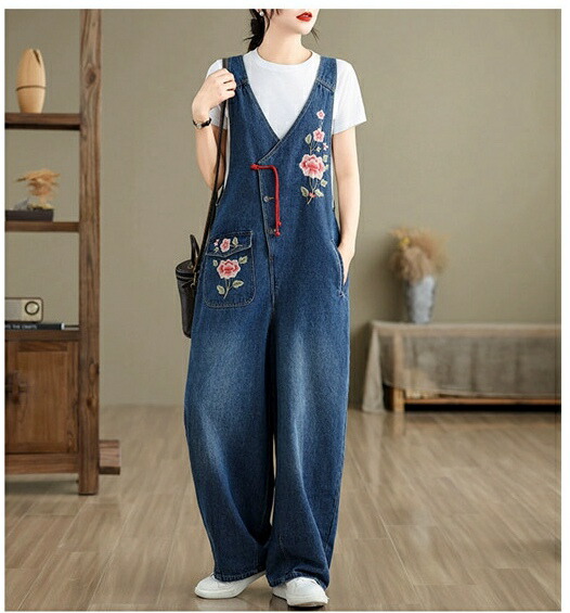 デニム オーバーオール 刺繍 サロペッ レディースファッション 新作 M L XL 2XL