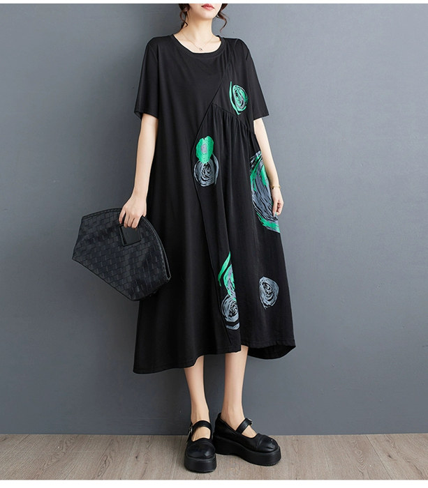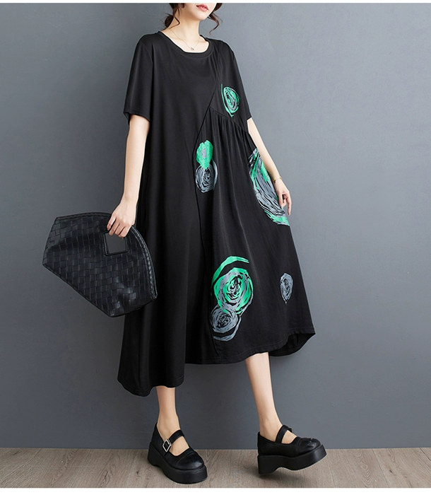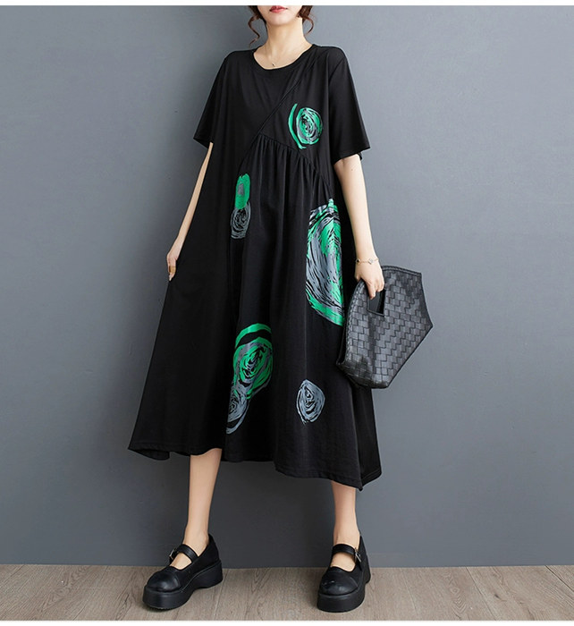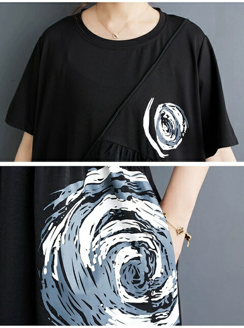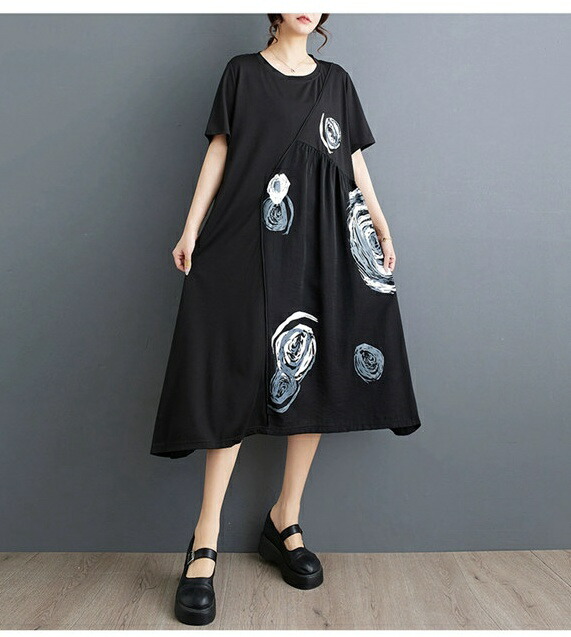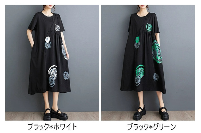 ロングワンピース Tシャツワンピース ワンピース 割引 ブラック*ホワイト ブラック*グリーン