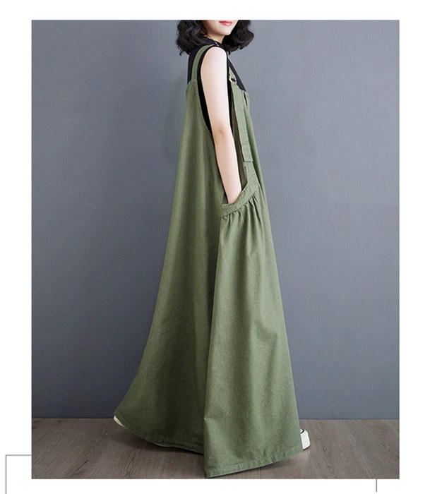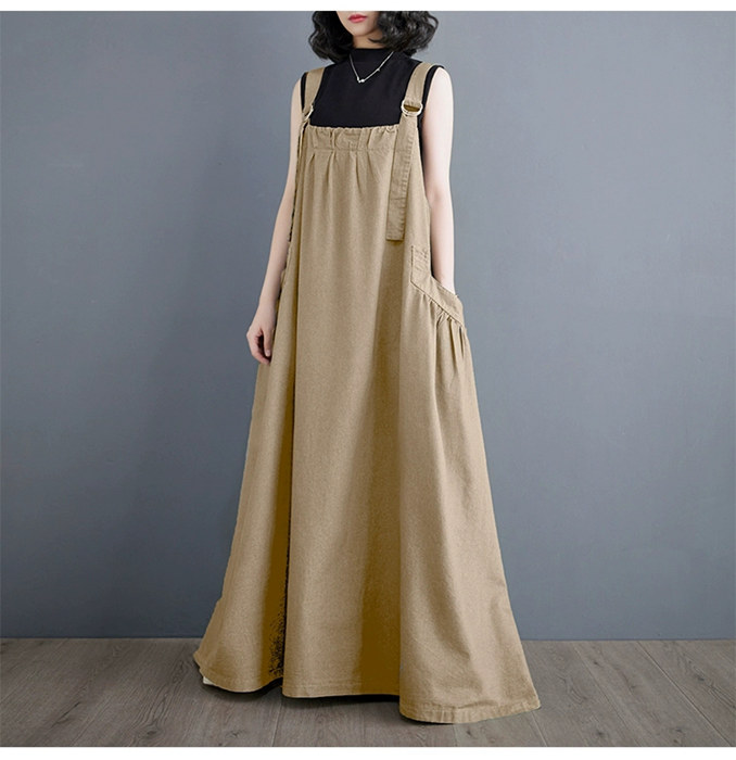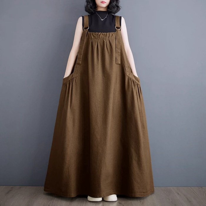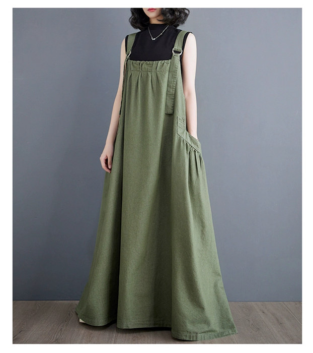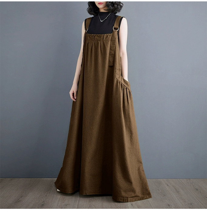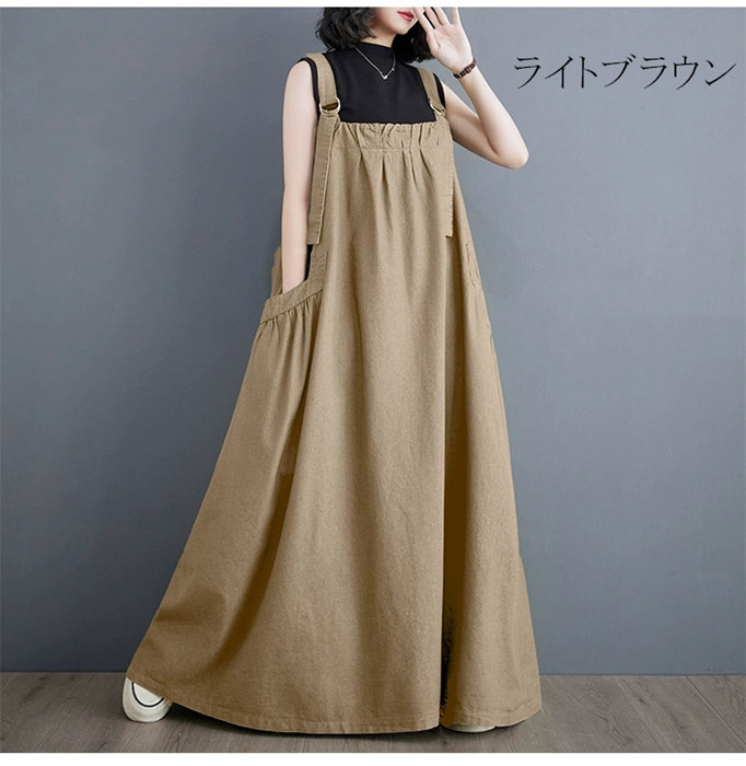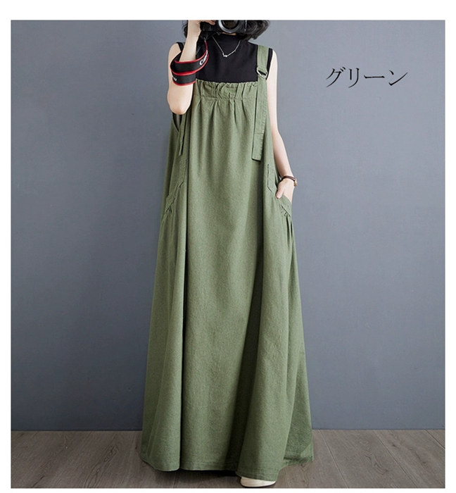 マキシ ジャンパースカート 大人 ワン ブラック ライトブラウン ブラウン グリーン