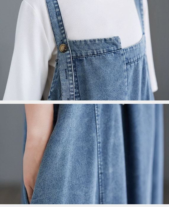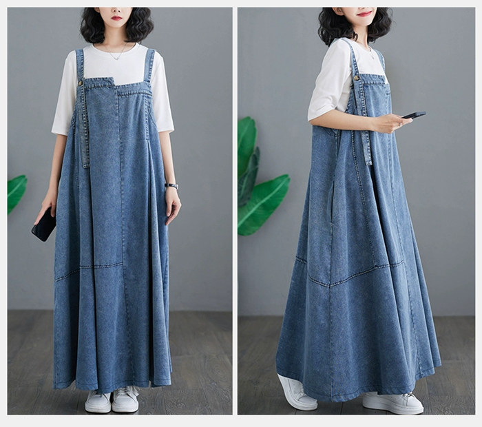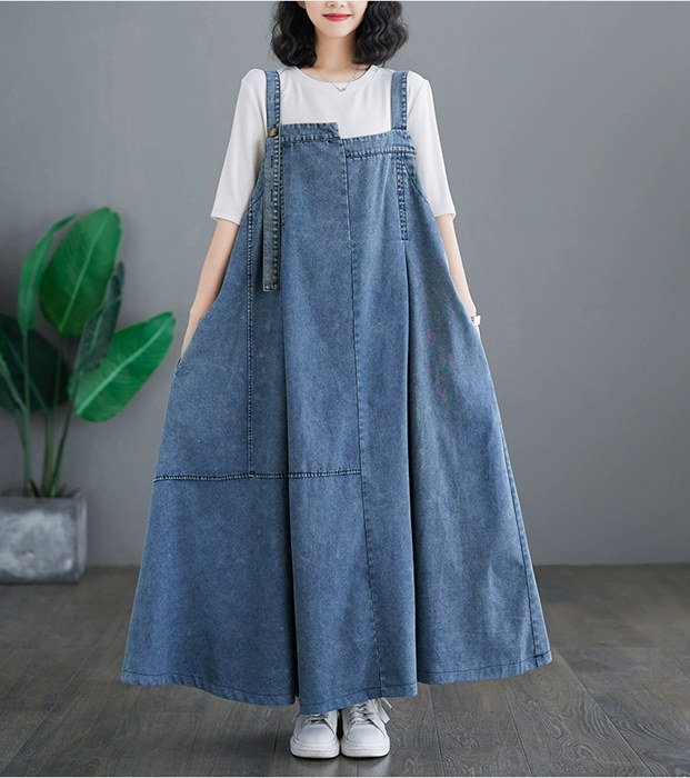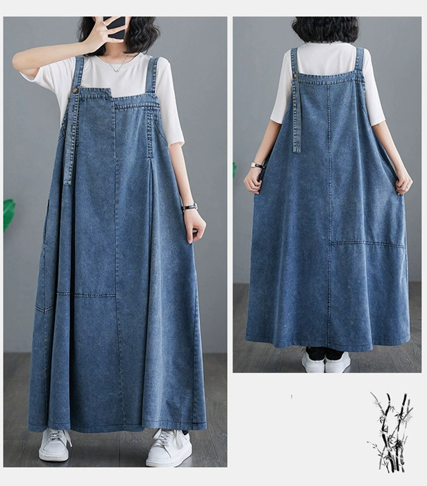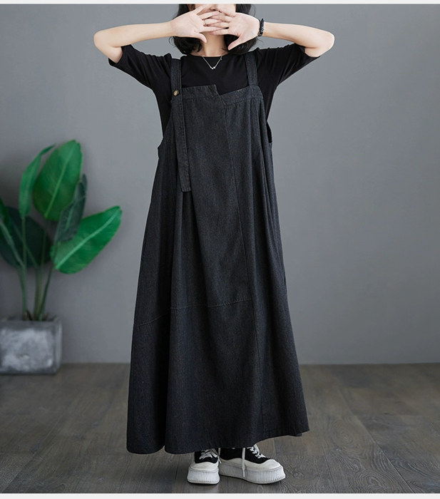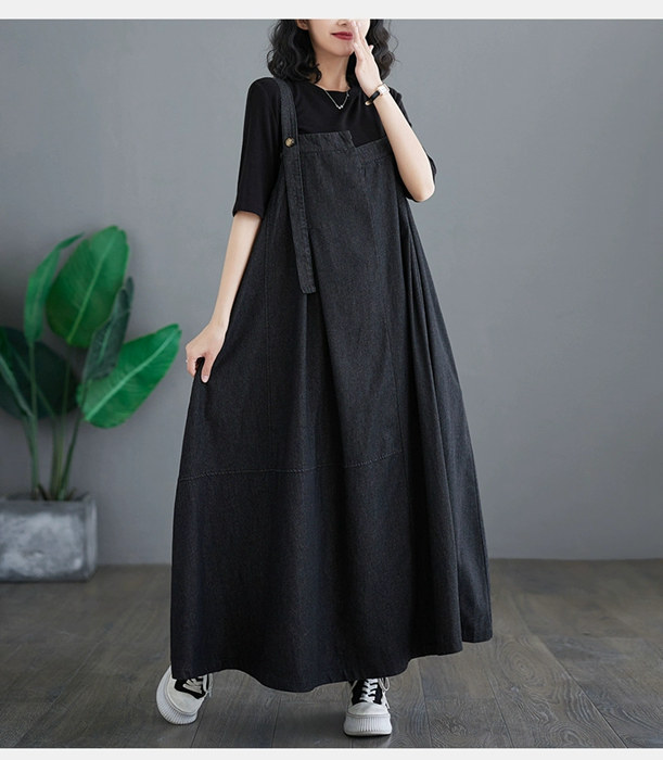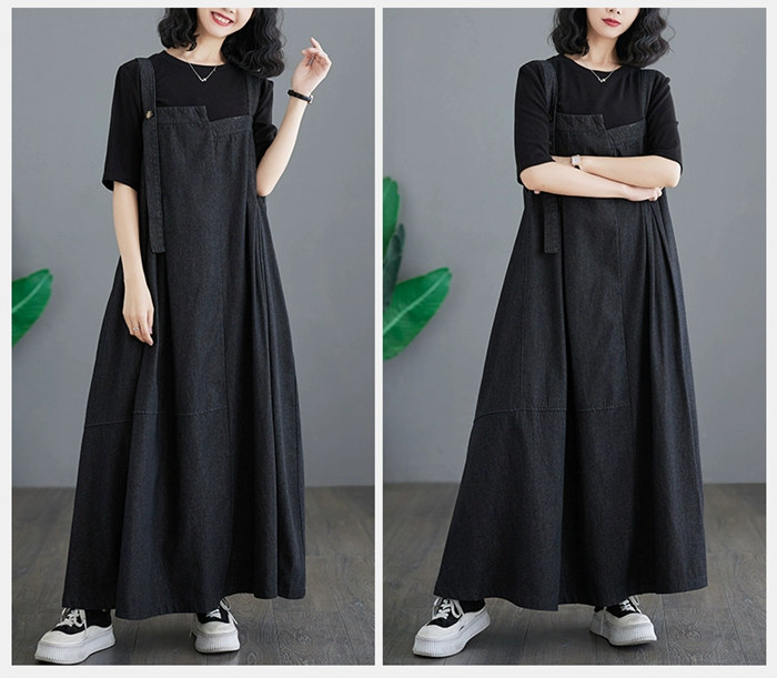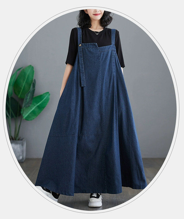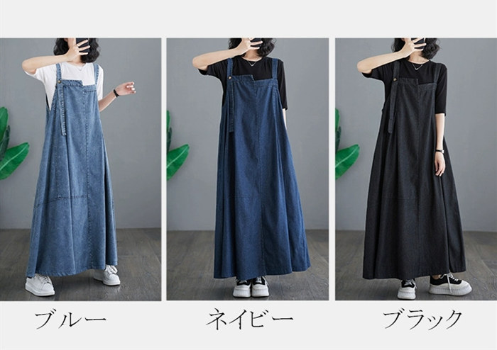 デニムジャンパースカート マキシ 大人 レディースファッション 割引 M L XL 2XL ブラック ブルー ネイビー