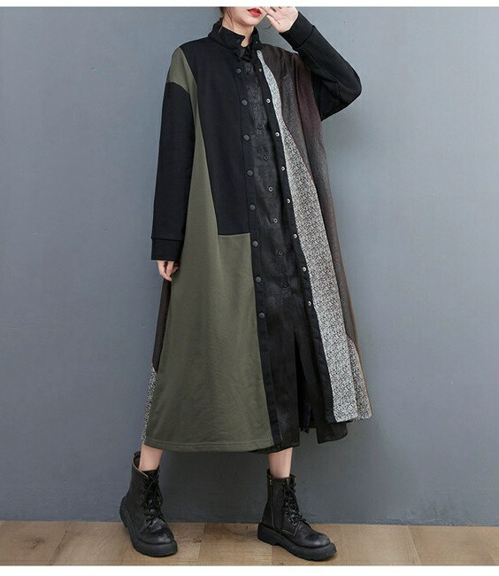 コート ロングワンピース ワンピ シャ カーキ ブラウン