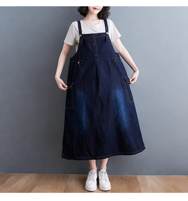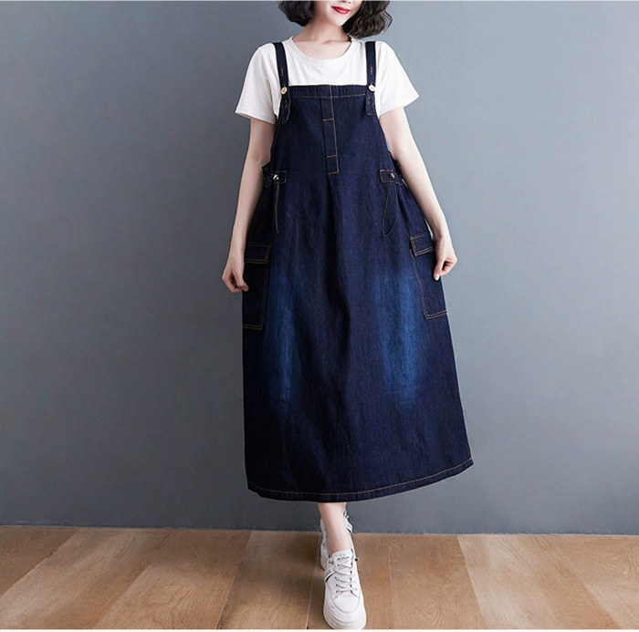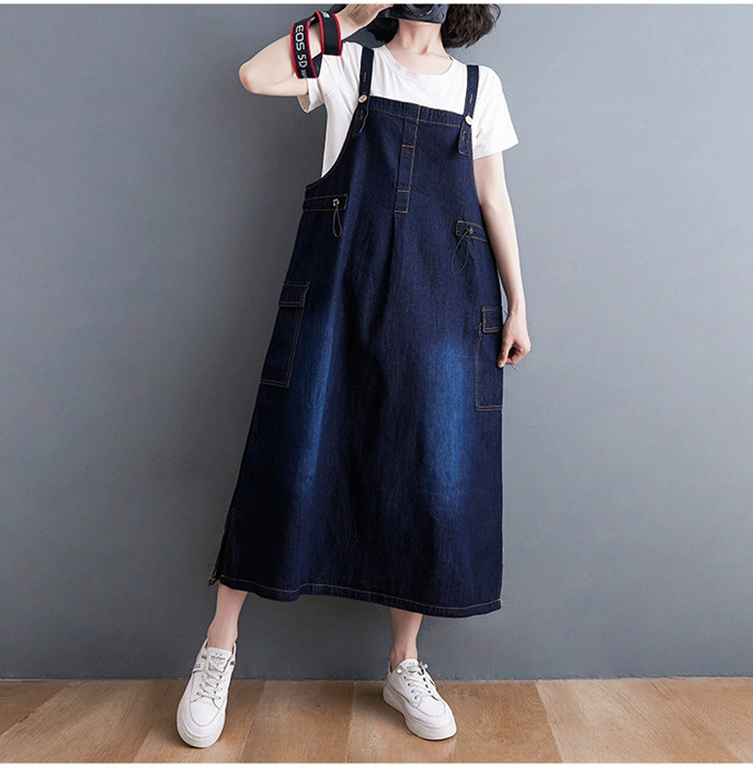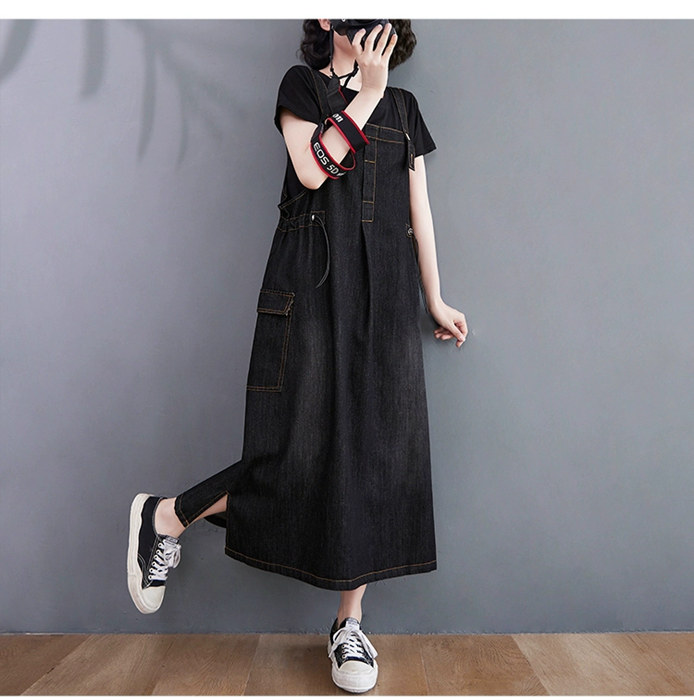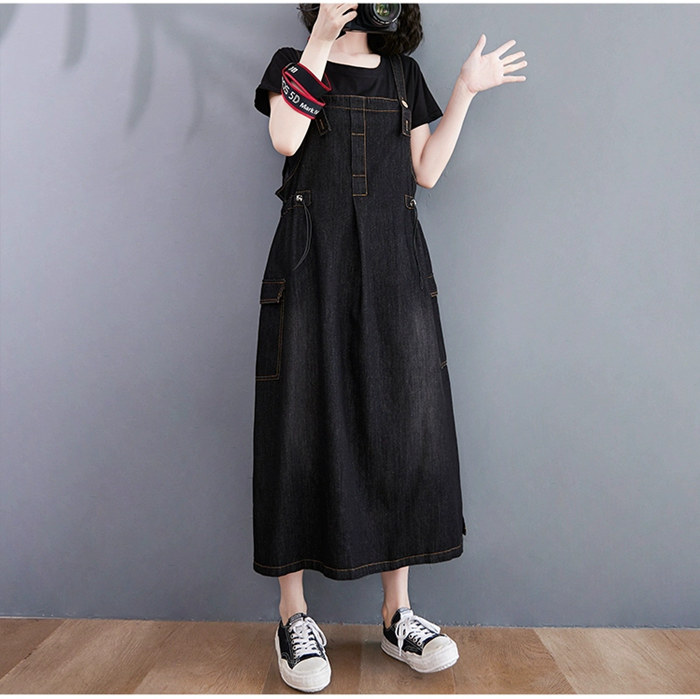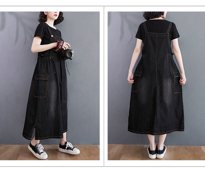 春夏 デニム レディース ジャンパース M L XL 2XL ブルー ブラック